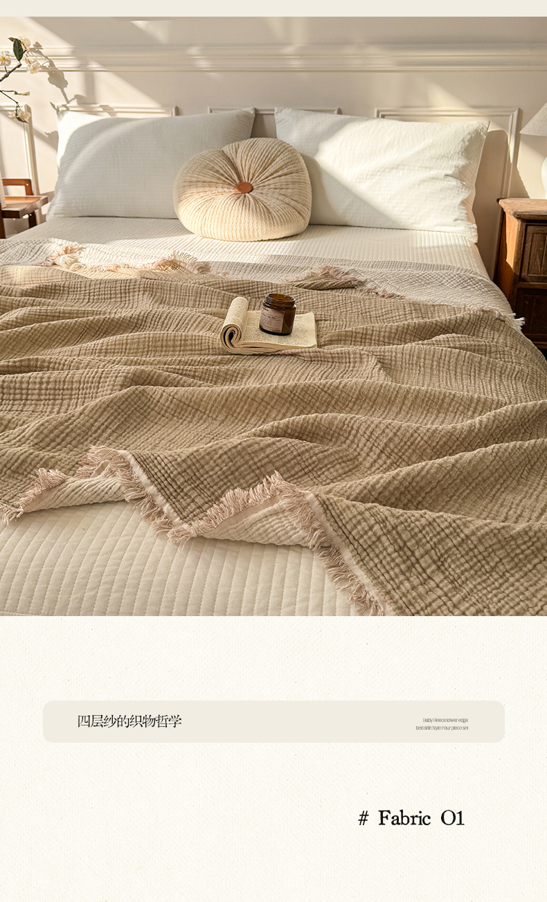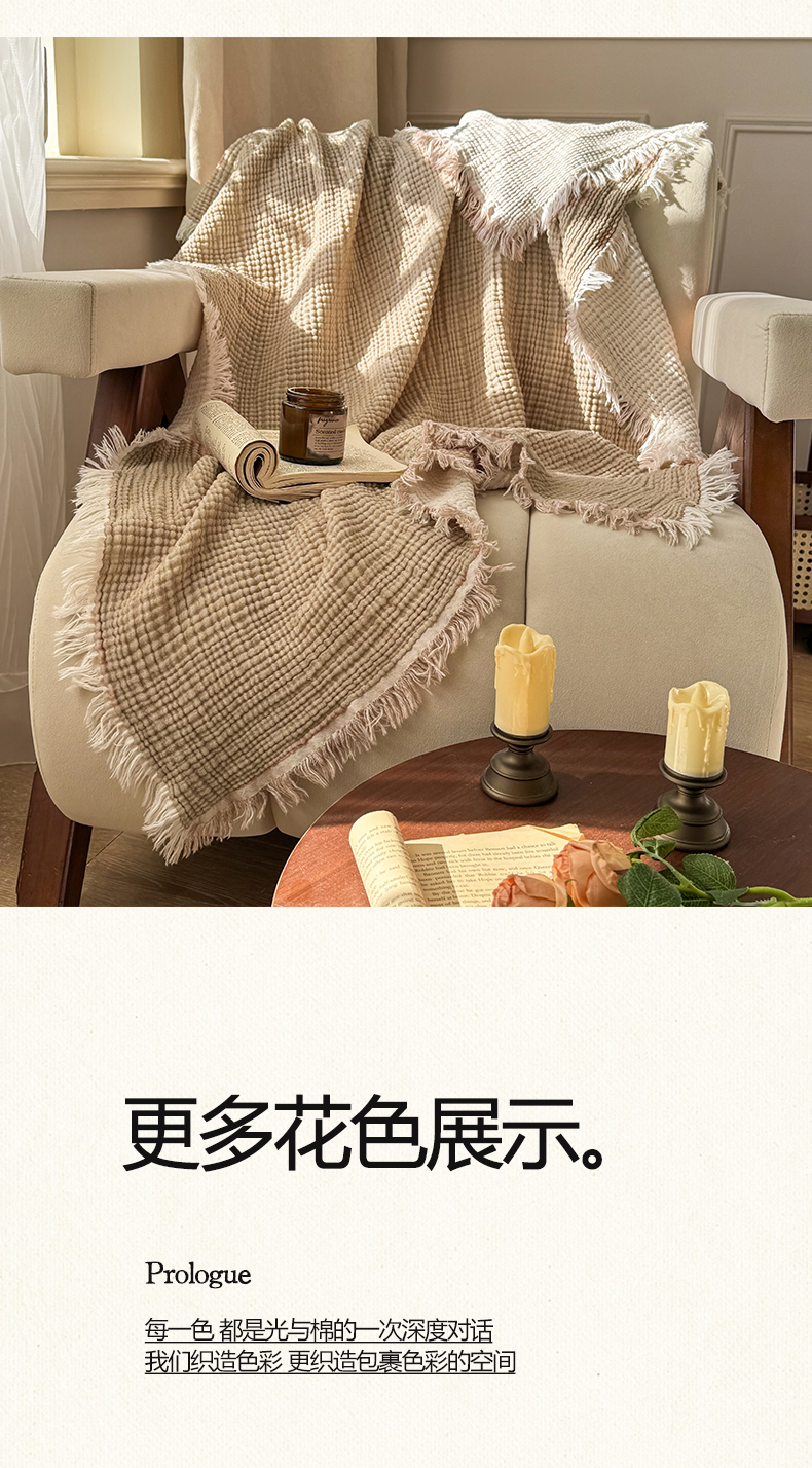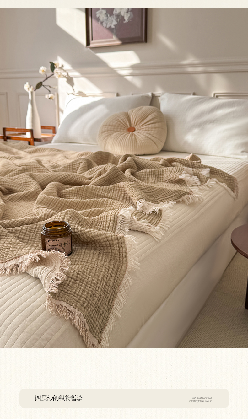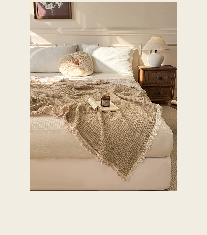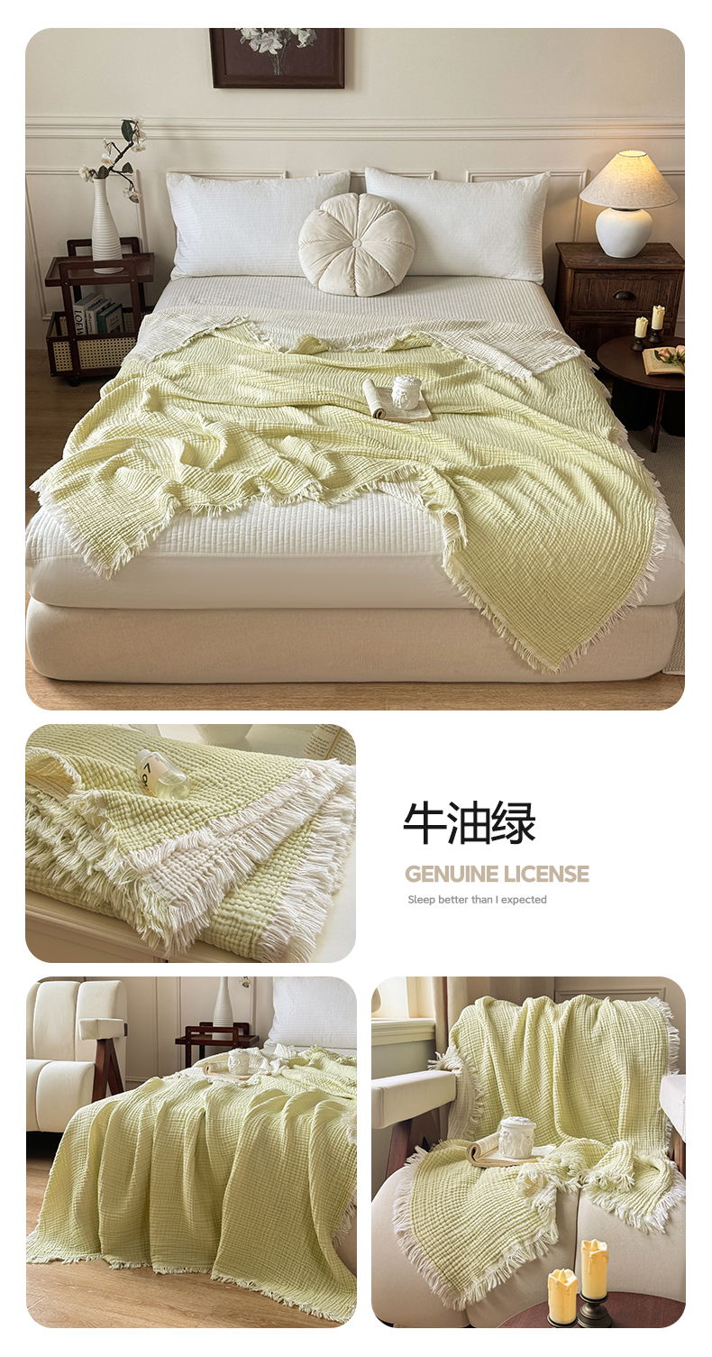 (总)帅露家纺 2026新款全棉四层纱多功能盖毯毛毯,卡其,牛油绿,气质灰,天湖蓝,象牙白,优雅粉