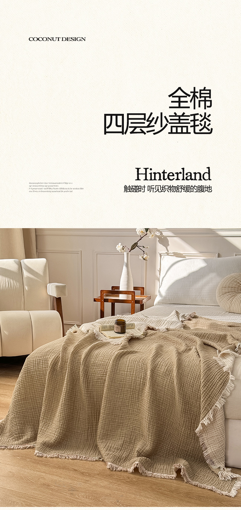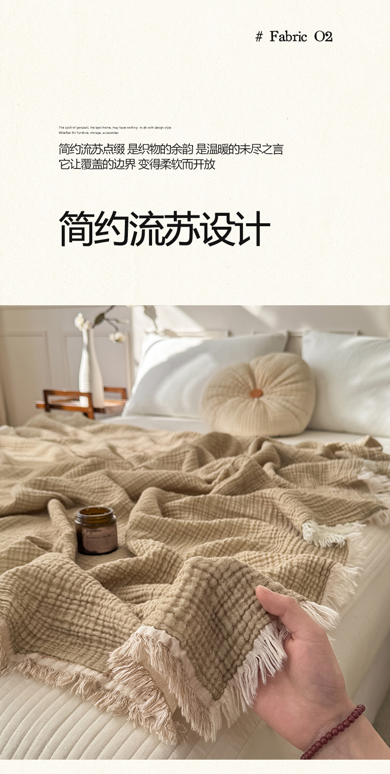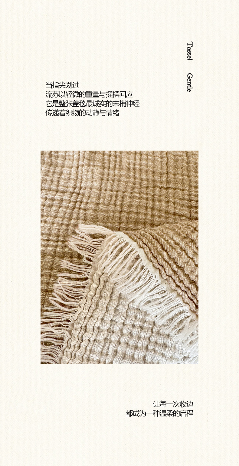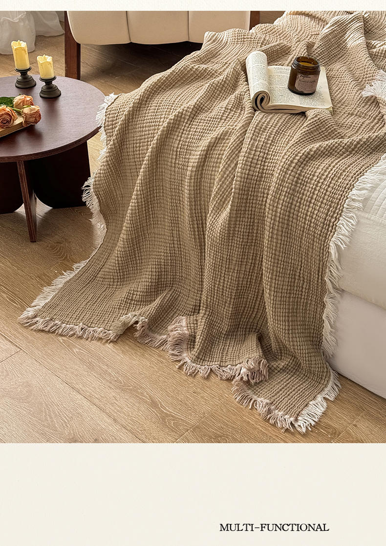 帅露家纺 2026新款全棉四层纱多功能盖毯毛毯 卡其