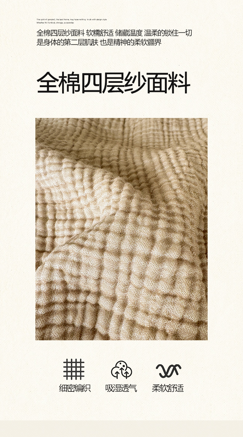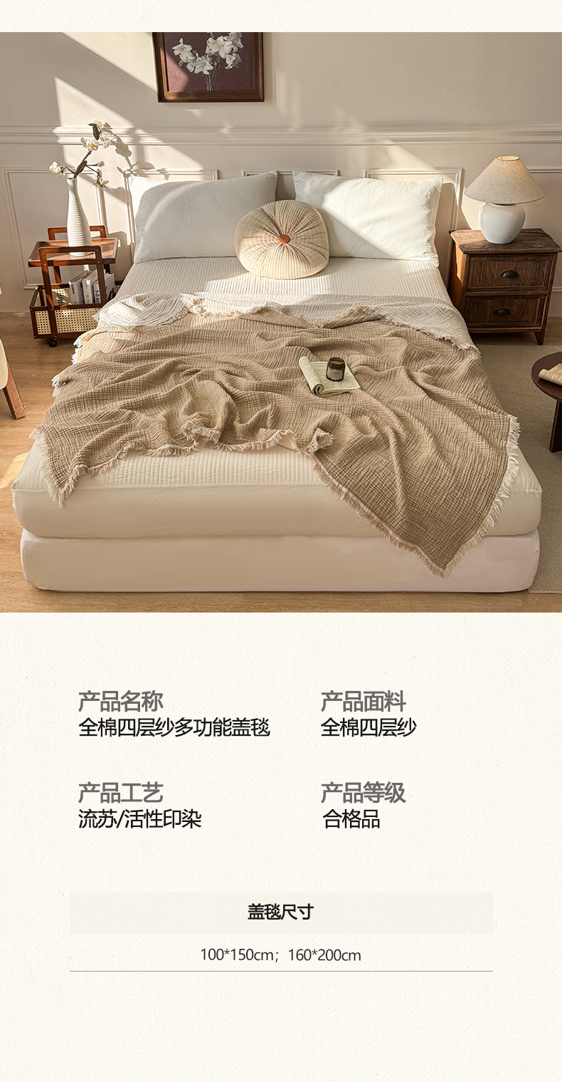 商品名称:帅露家纺 2026新款全棉四层纱多功能盖毯毛毯 卡其