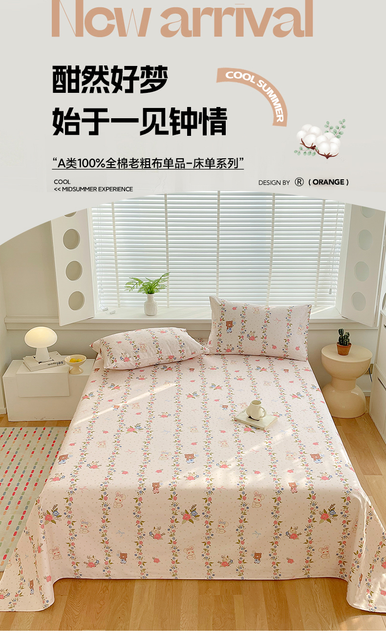 (总)爱彼家纺 2026新款升级细沙印花老粗布床单单品床单床单单件-细沙系列四,花笺,花漾手礼,花屿南瓜,蓝花序,蓝菊绘,山河日立,甜心