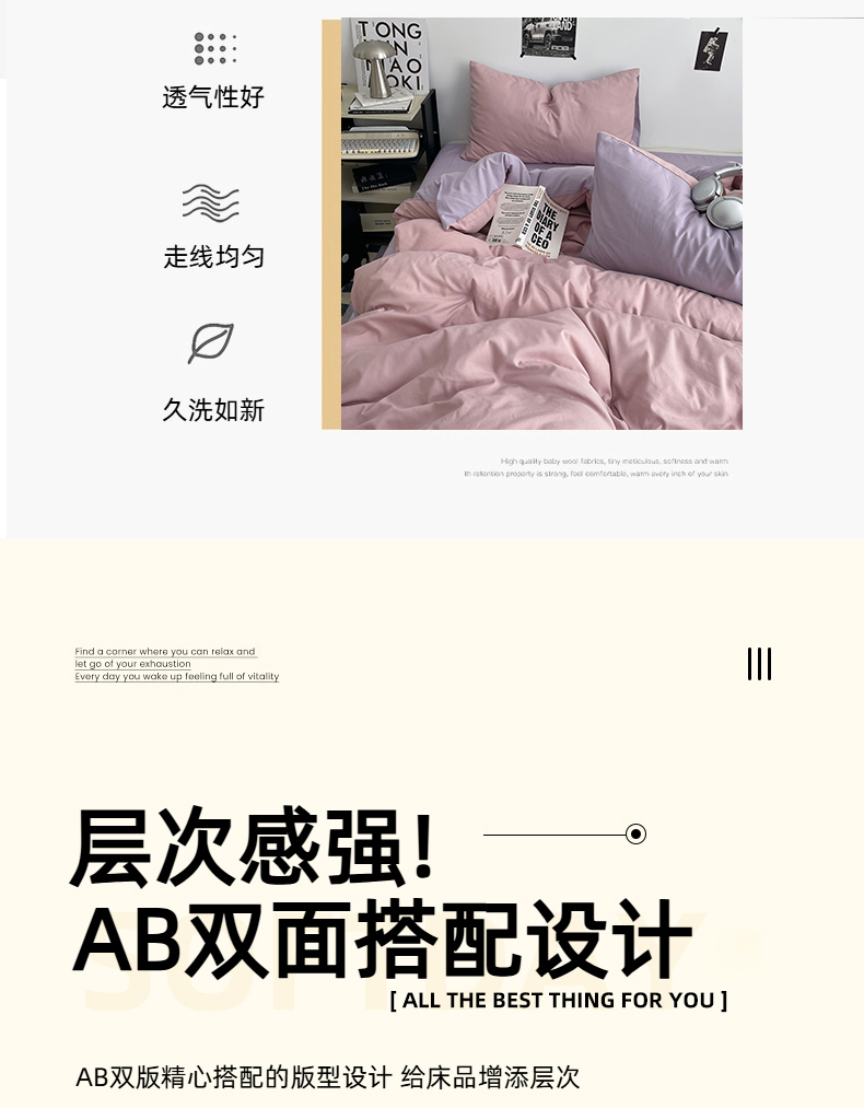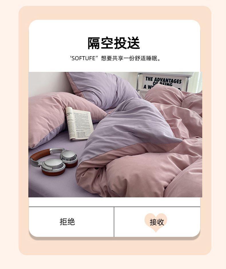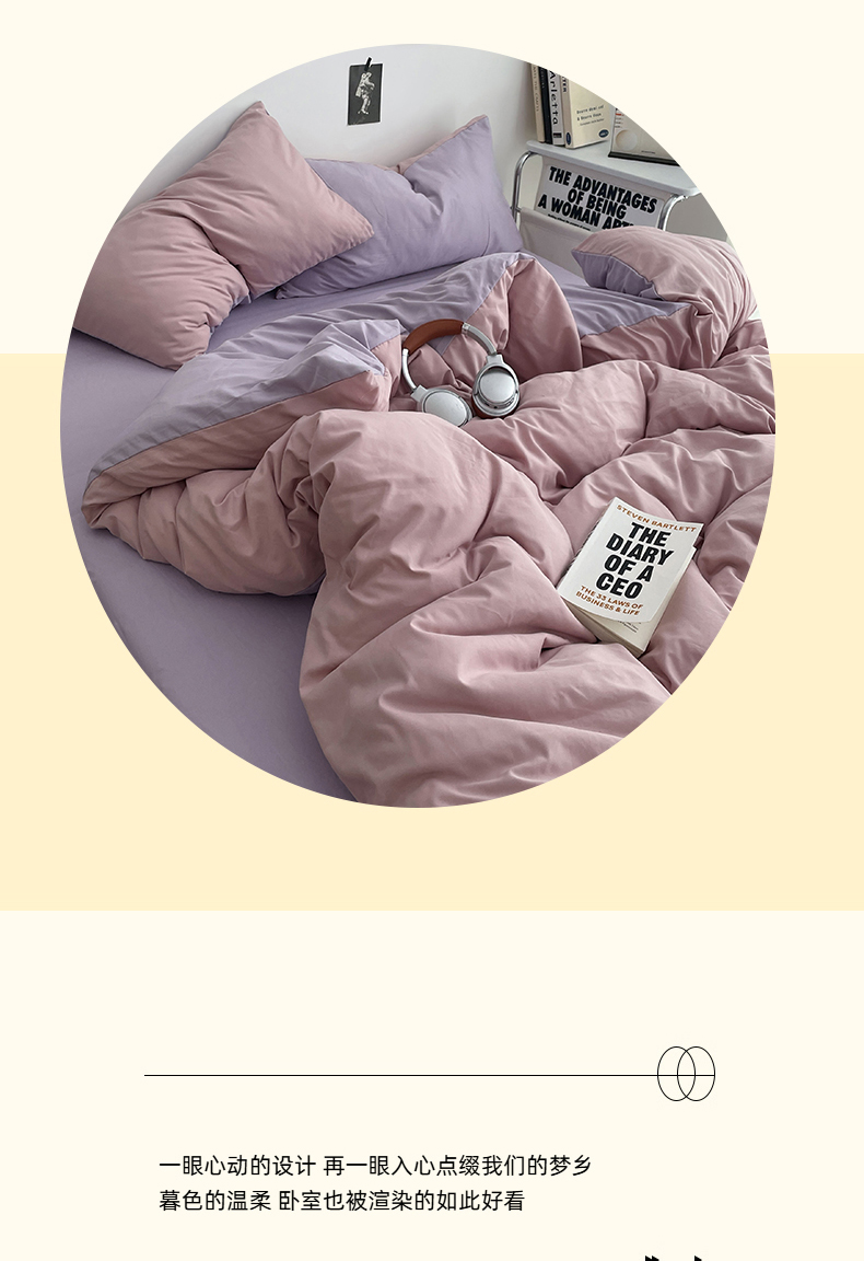 • 91家纺网 家纺一手货源 找家纺 贝拉梦家纺 2026新款无印风高克重加厚云感棉三件套四件套单被套系列 粉芋软酪