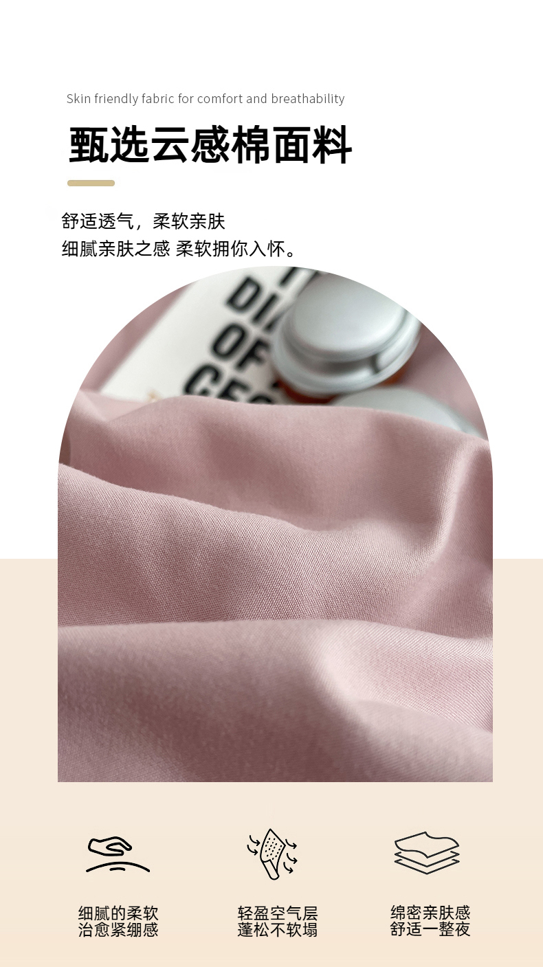 当前位置: 91家纺网 > 商品网购 > 床上用品 > 被套 > 贝拉梦家纺 2026新款无印风高克重加厚云感棉三件套四件套单被套系列 粉芋软酪