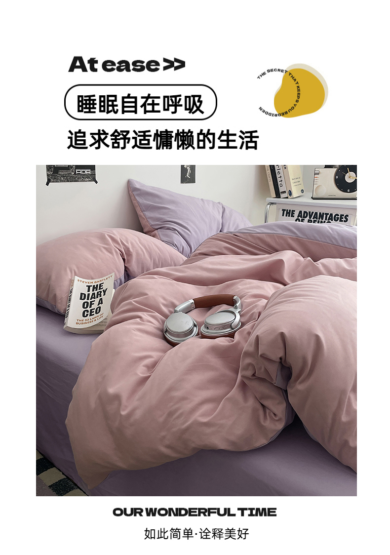 (总)贝拉梦家纺 2025新款纯色磨毛双拼亲肤棉四件套,暗黑骑士,半熟青柠,蓝色星河,奶油香草,乌梅子酱
