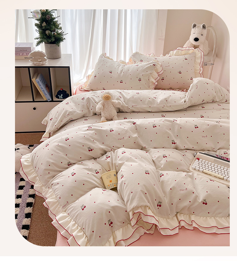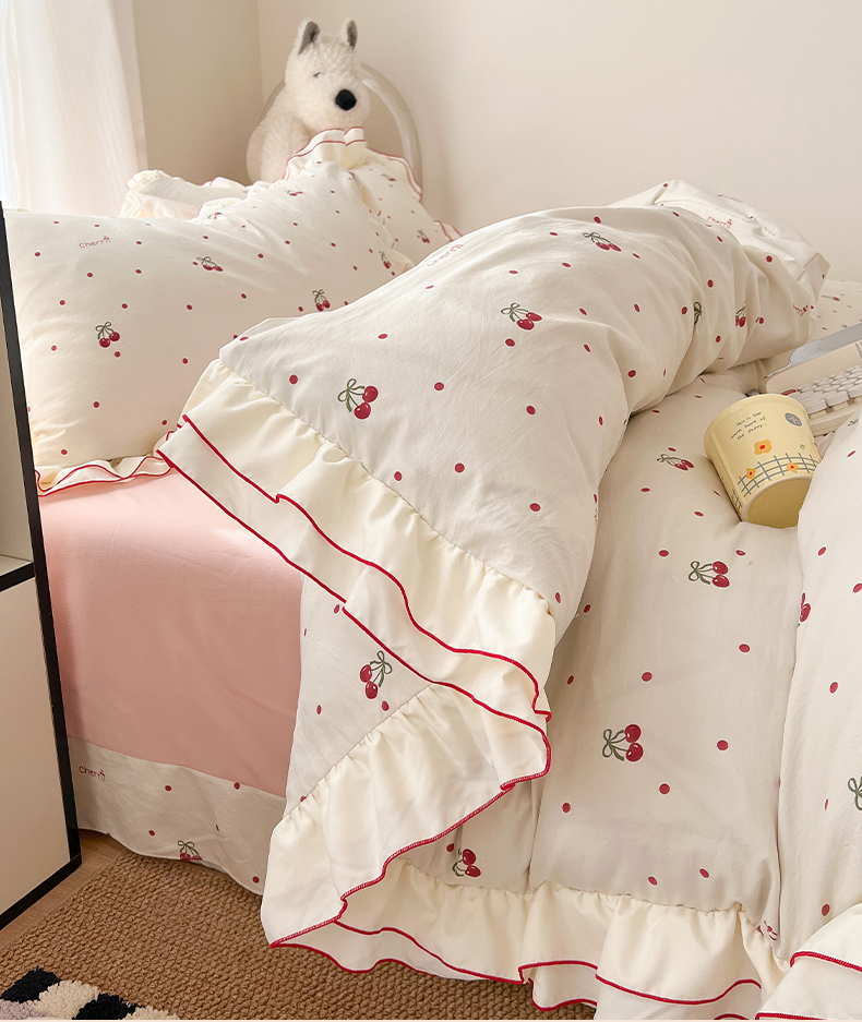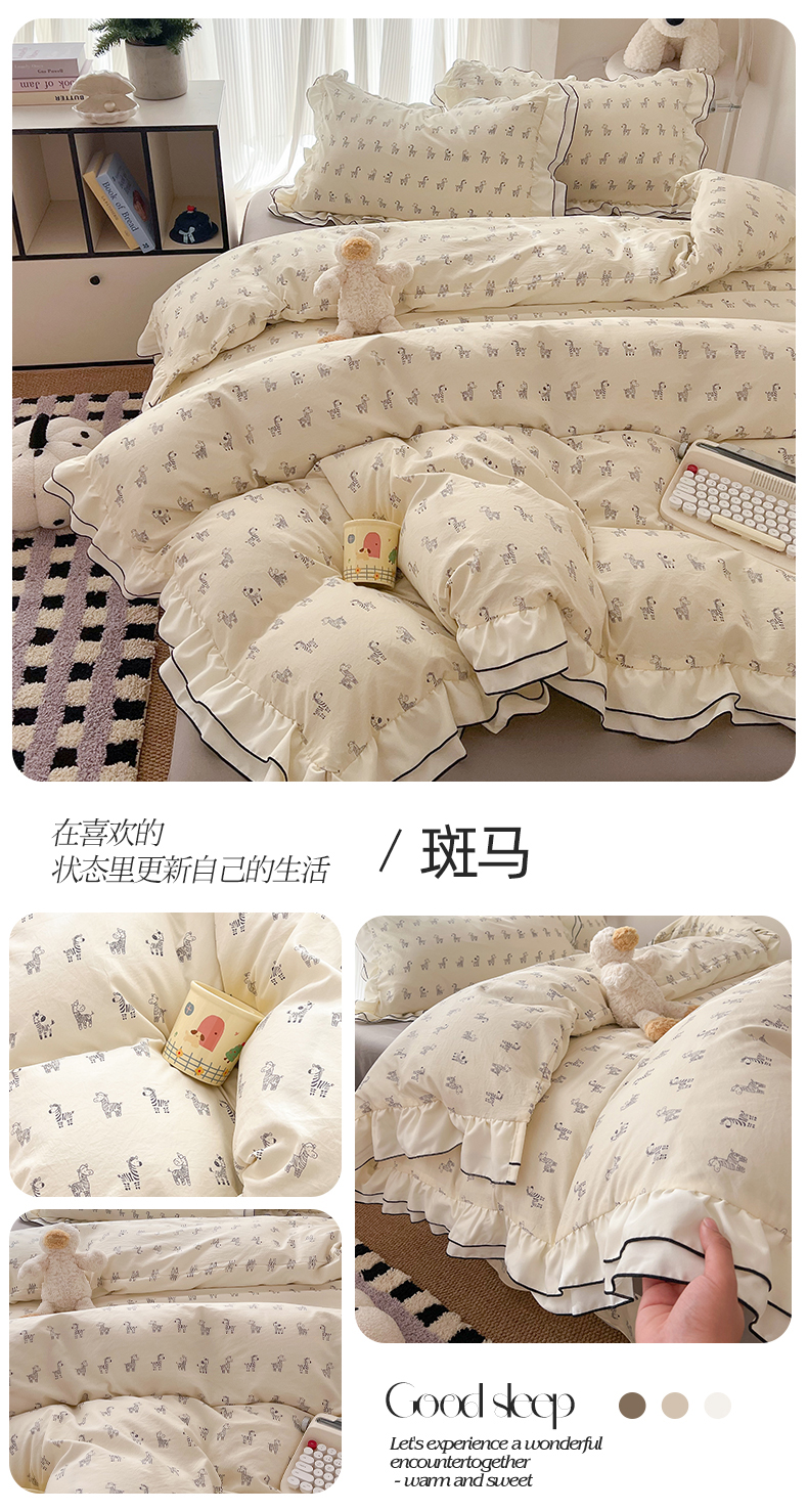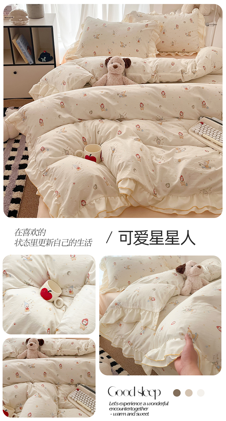 (总)吾欢心 2026春夏新款古法水洗仿棉韩版双层花边四件套,KT猫,斑马,彩色蝴蝶结,卡通小狗,可爱星星人,萌宠宝贝,秘境花园,奶萌小狗,田园趣味,汐颜,小草莓,樱桃派