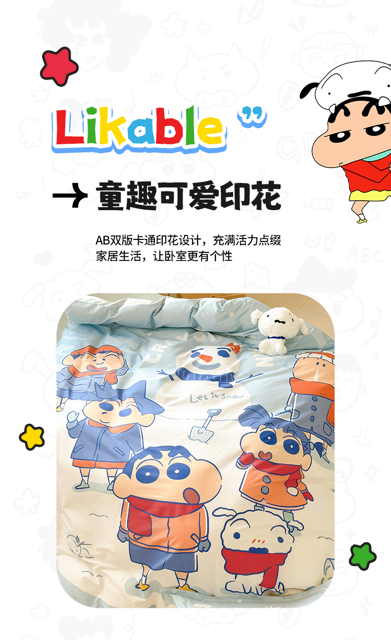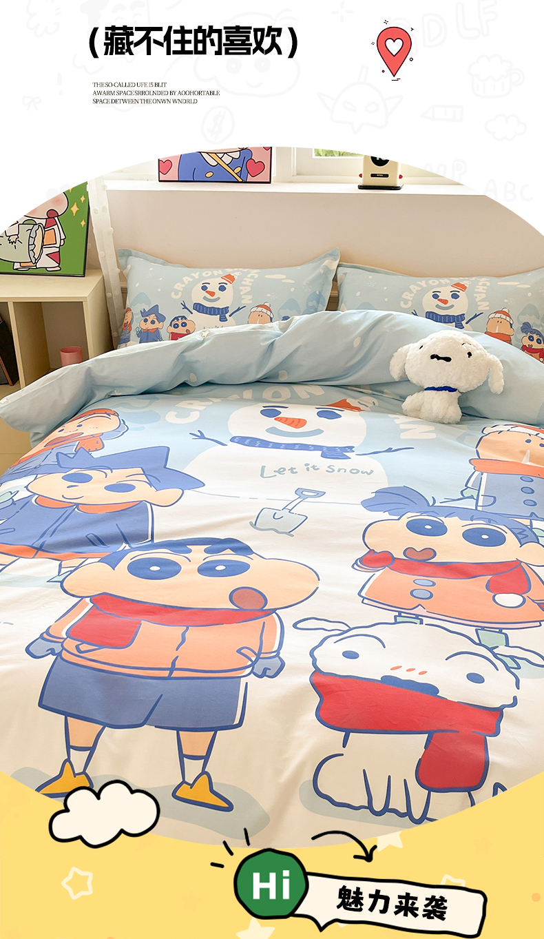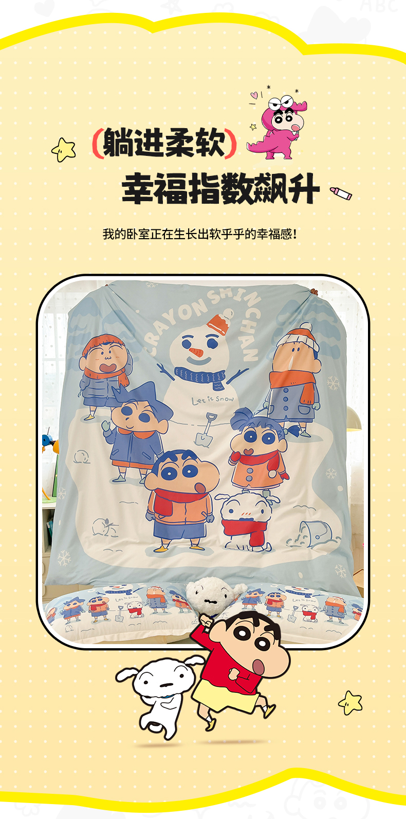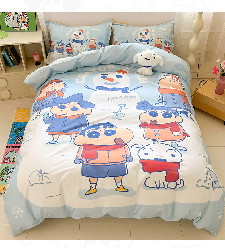 当前位置: 91家纺网 > 商品网购 > 床品套件 > 四件套 > 全棉普通四件套 > 博雅 2026新款蜡笔小新正版授权全棉纯棉大版四件套 大版-冬日雪人小新