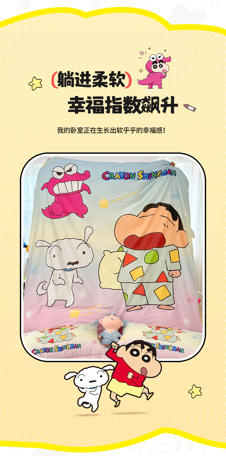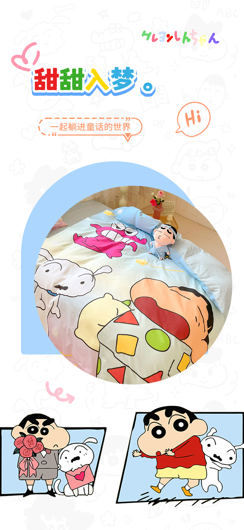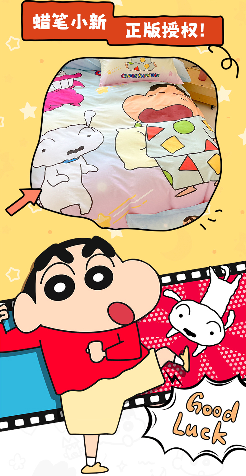 当前位置: 91家纺网 > 商品网购 > 床品套件 > 四件套 > 全棉普通四件套 > 博雅 2026新款蜡笔小新正版授权全棉纯棉大版四件套 大版-贪睡小新