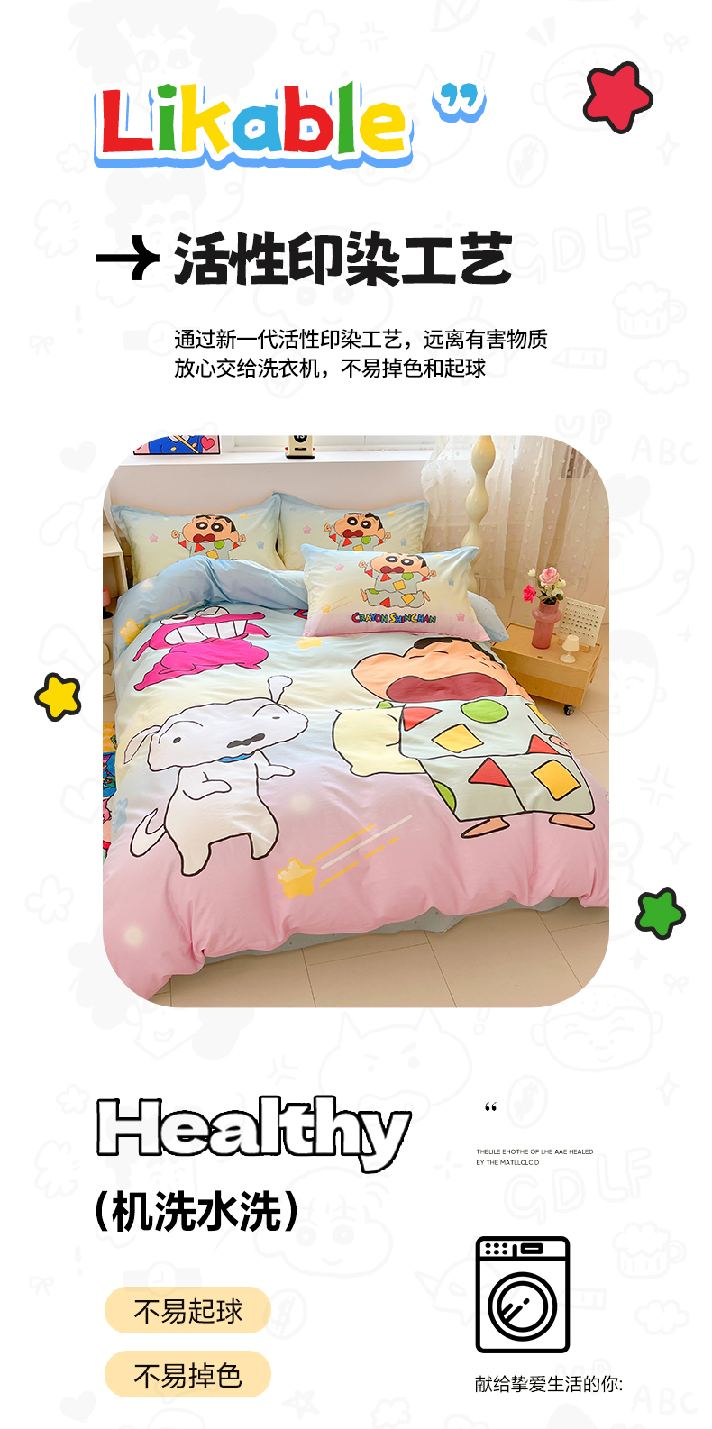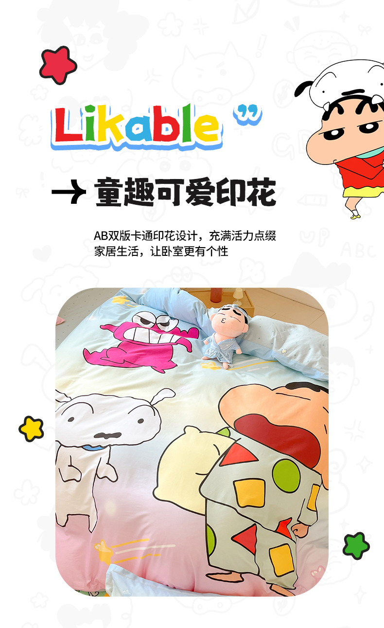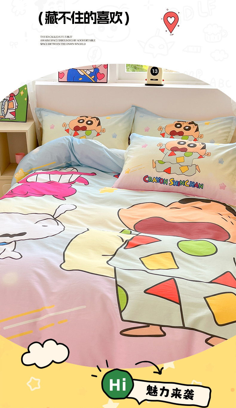 当前位置: 91家纺网 > 商品网购 > 床品套件 > 四件套 > 全棉普通四件套 > 博雅 2026新款蜡笔小新正版授权全棉纯棉大版四件套 大版-贪睡小新