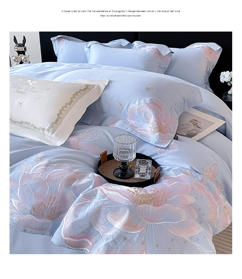 (总) 2025春夏长绒棉四件套纯棉全棉轻奢风床单被套重工刺绣床上用品,芊羽梦-白粉,芊羽梦-茶绿,芊羽梦-黛紫,芊羽梦-慕蓝,芊羽梦-颜粉