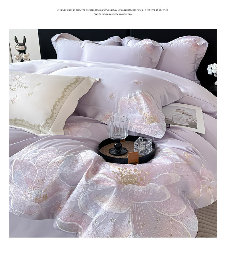 (总) 2026马年特惠新品A类长绒棉纯棉四件套100全棉重工刺绣被套床单床笠轻奢高级感床上用品-花之语,花之语-白粉,花之语-黛紫,花之语-慕蓝,花之语-颜粉