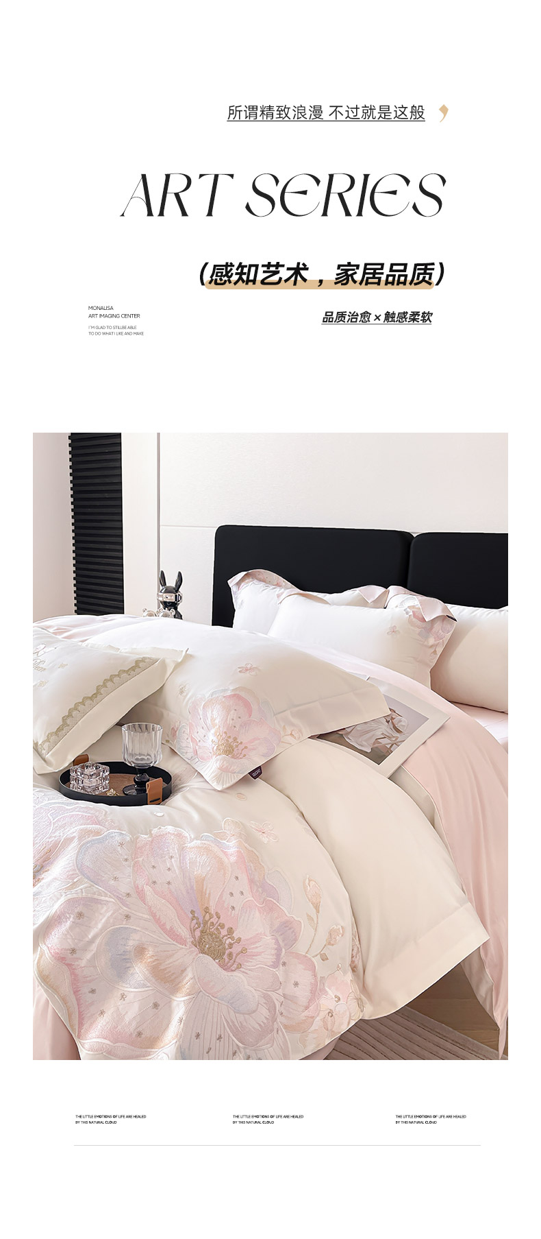 (总) 2026新品高端轻奢风A类贡缎长绒棉四件套纯棉重工刺绣被套床单高级感床笠床上用品-格拉芙,格拉芙-芸粉,格拉芙-柔杏