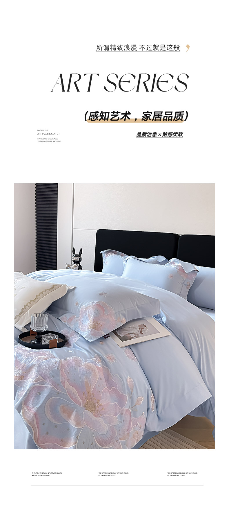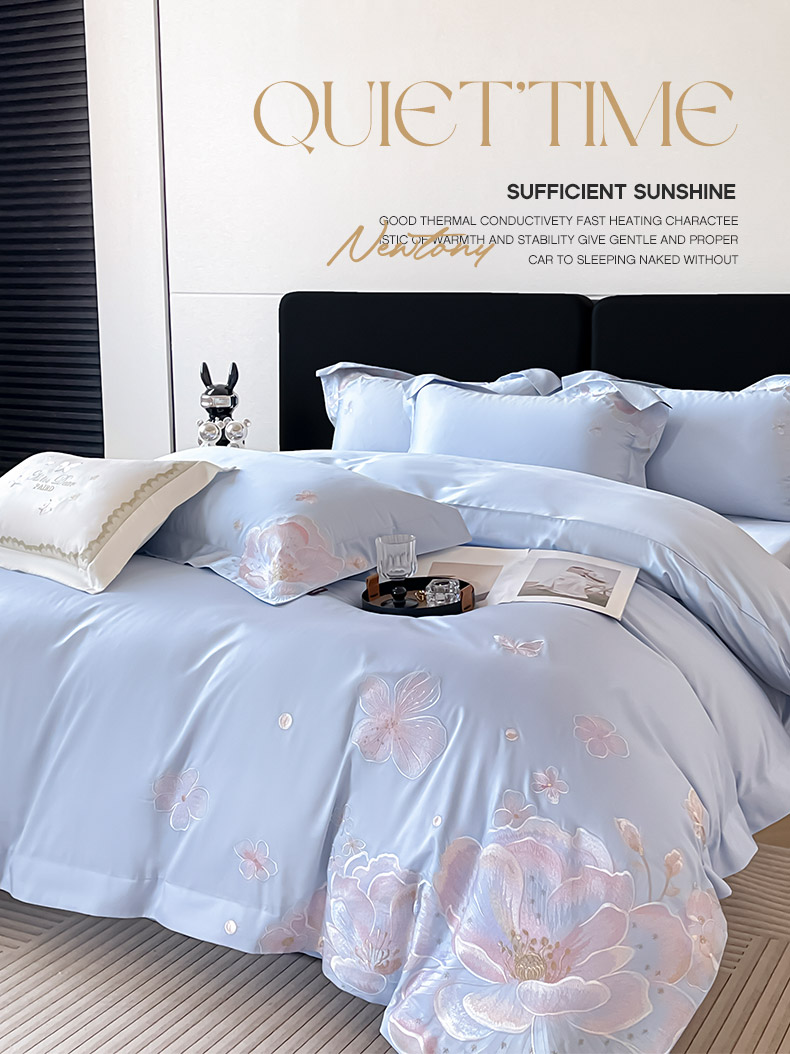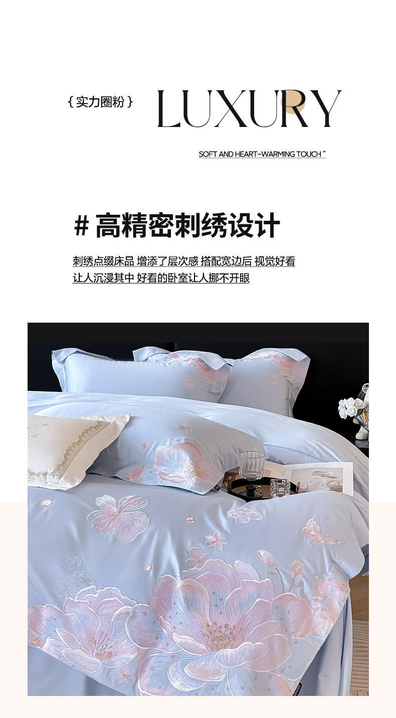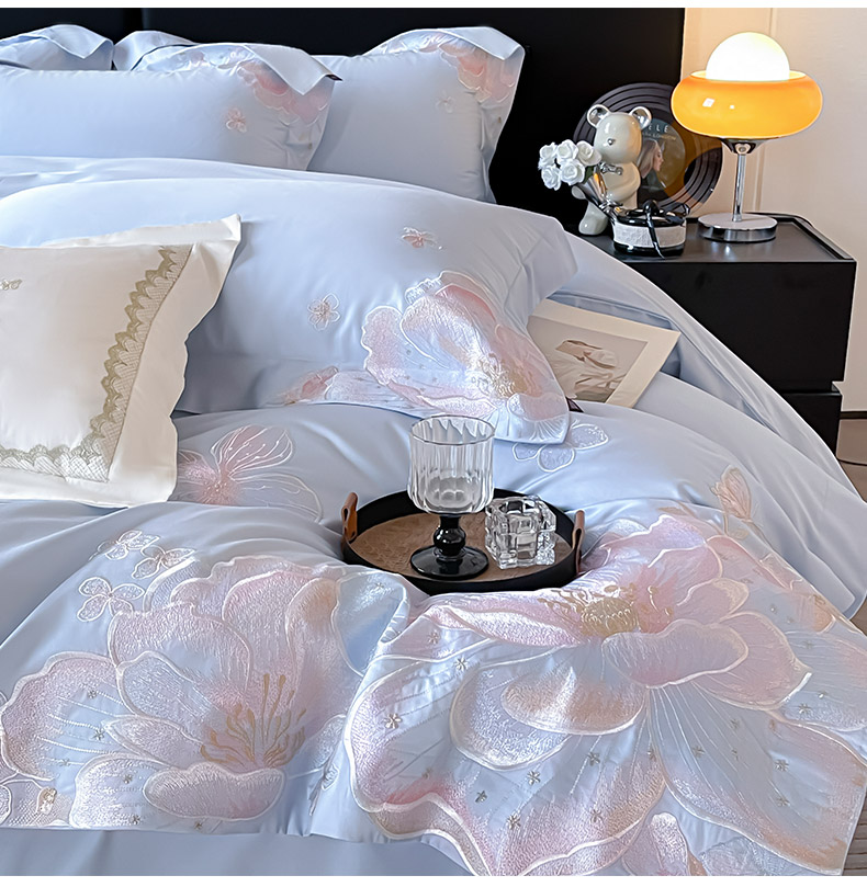 商品名称:2026马年特惠新品A类长绒棉纯棉四件套100全棉重工刺绣被套床单床笠轻奢高级感床上用品-花之语 花之语-慕蓝