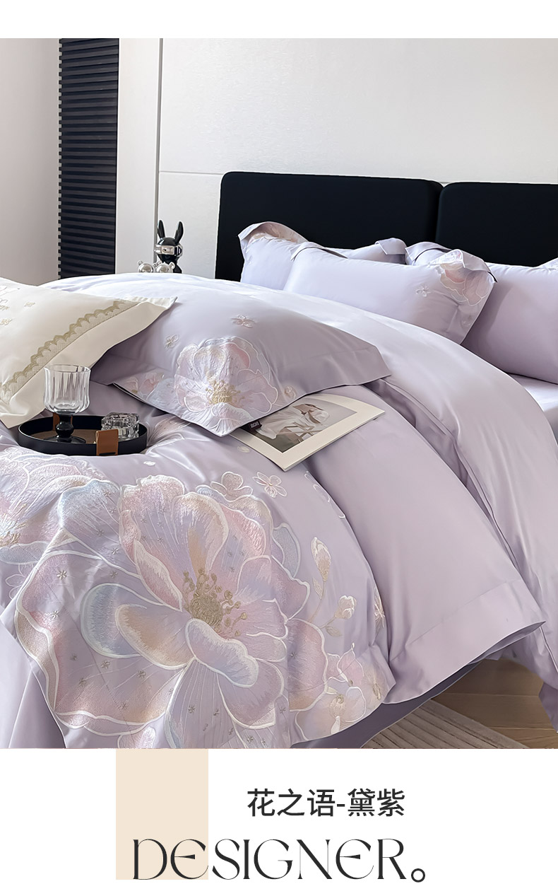 (总)2026马年特惠新品A类长绒棉纯棉四件套100全棉重工刺绣被套床单床笠轻奢高级感床上用品-花之语,花之语-颜粉,花之语-白粉,花之语-黛紫,花之语-慕蓝