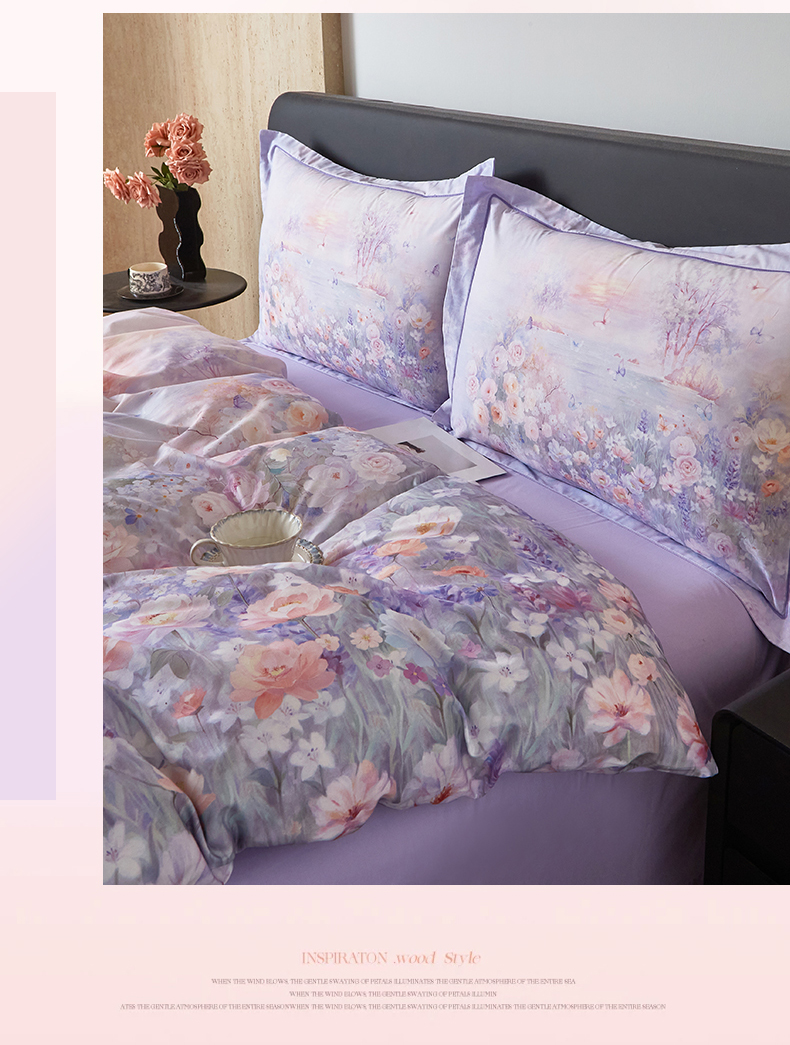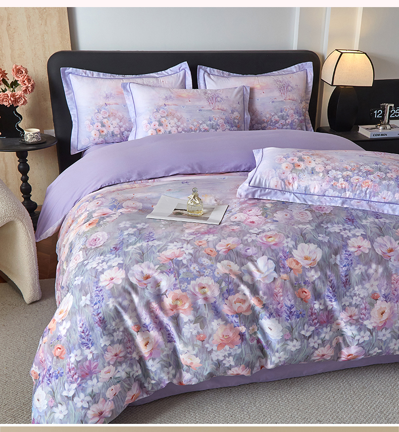 曼秀琳 2026新款铂金棉数码印花四件套(全棉133*76) 可提供买家秀图片 风景宜人-紫