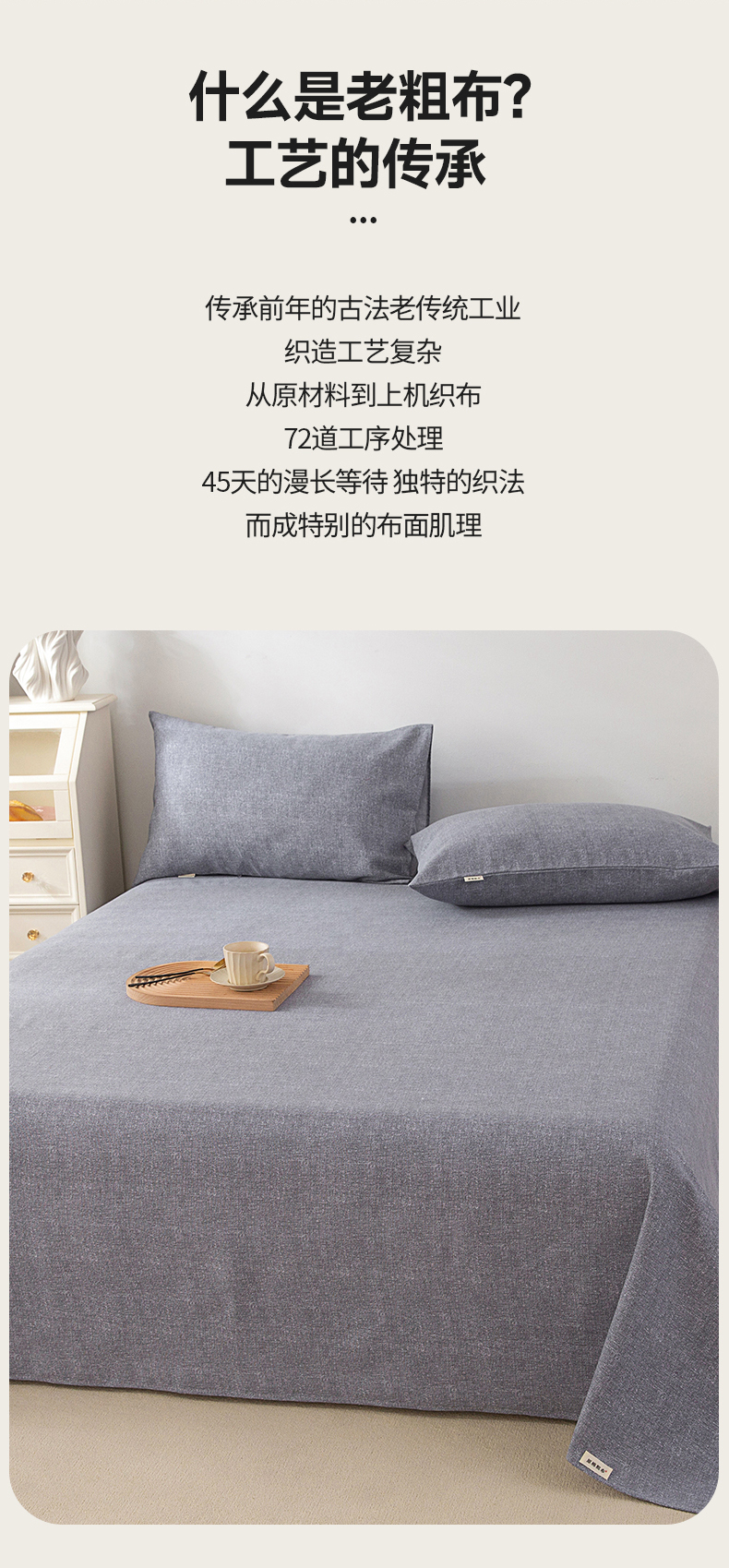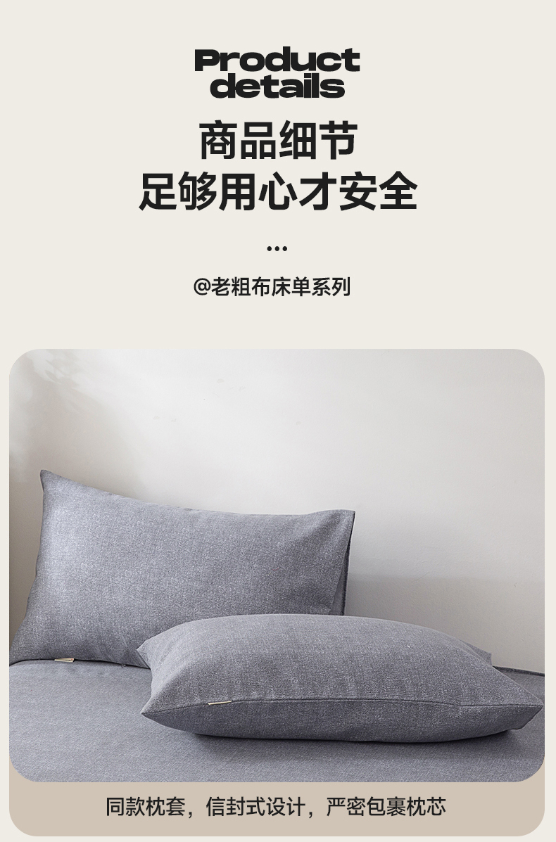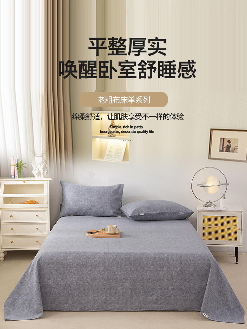 • 91家纺网 家纺一手货源 找家纺 首爱家纺 2026新款原棉标印花老粗布床单 浅灰