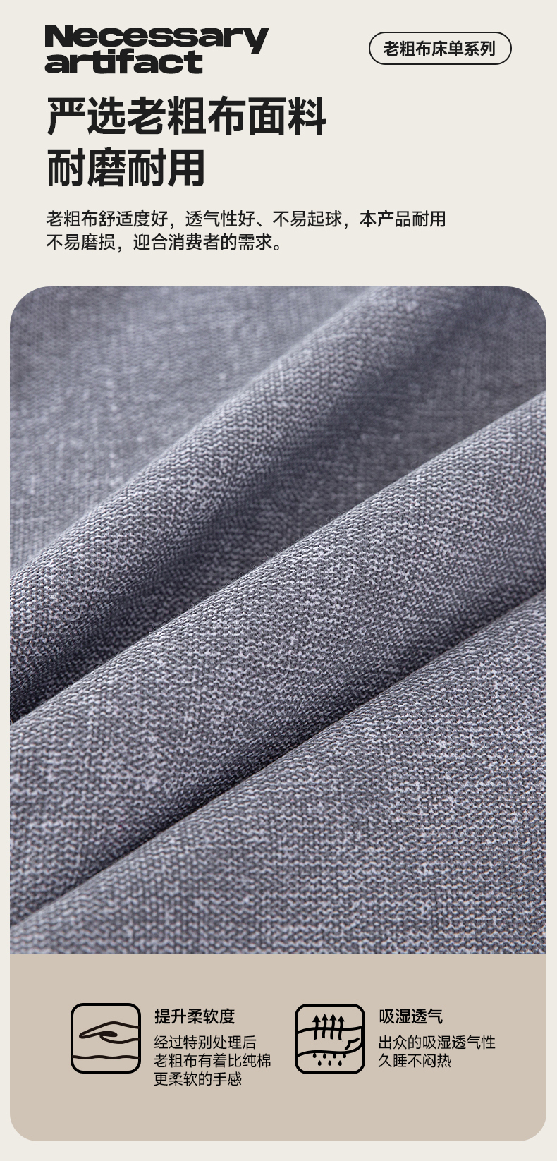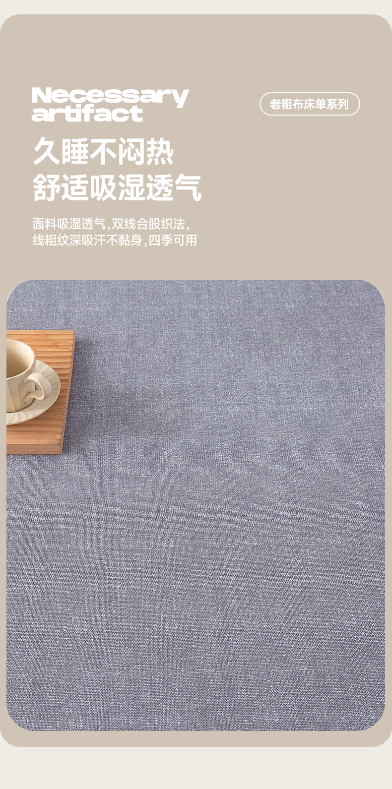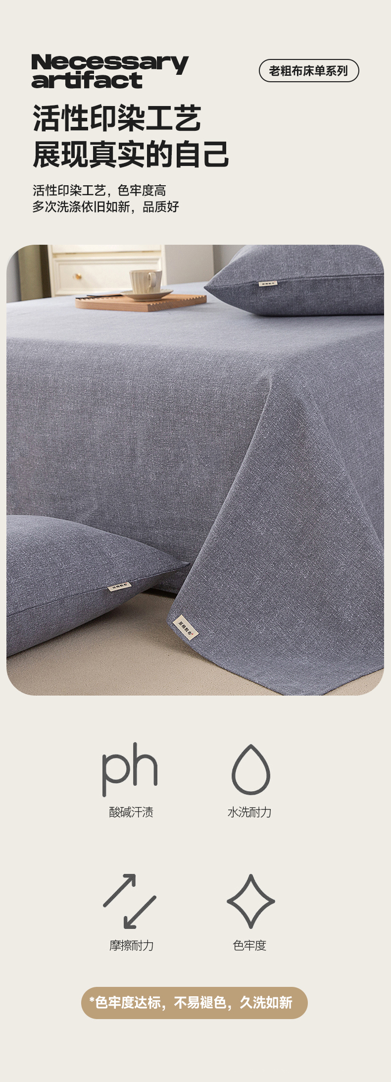 • 91家纺网 家纺一手货源 找家纺 首爱家纺 2026新款原棉标印花老粗布床单 浅灰