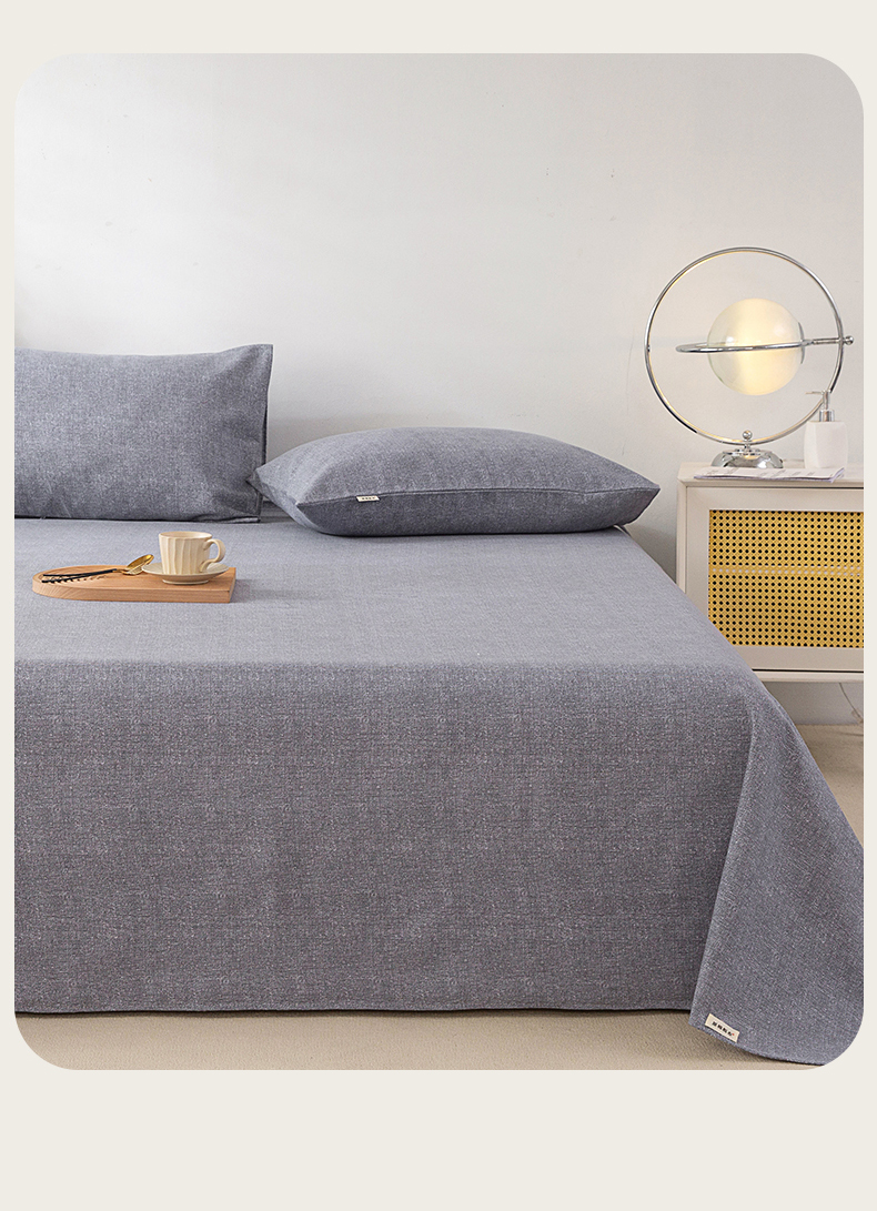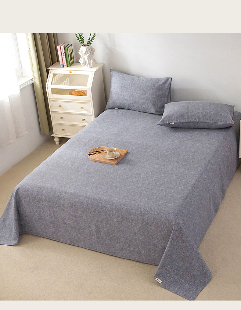首爱家纺 2026新款原棉标印花老粗布床单 浅灰