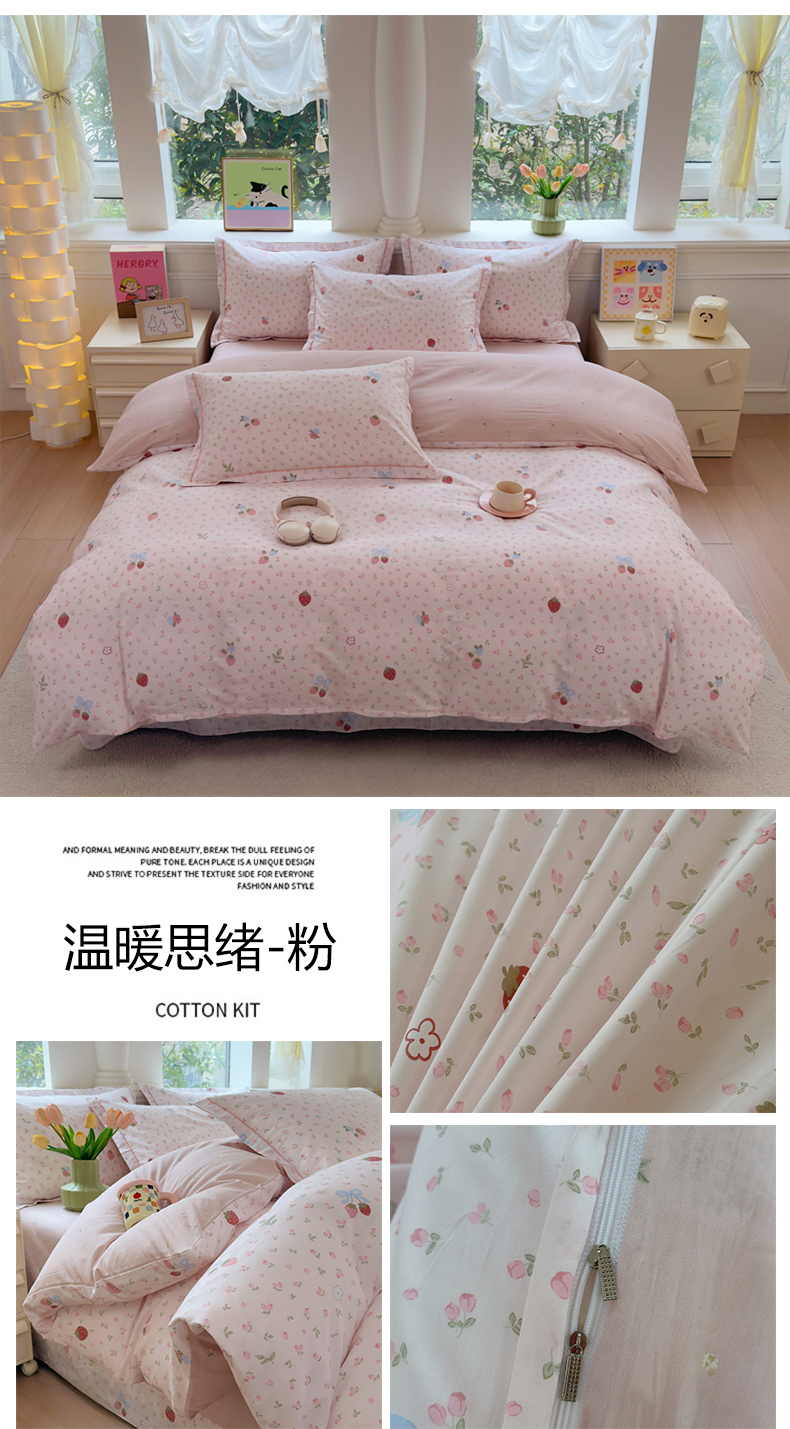 • 91家纺网 家纺一手货源 找家纺 铭博家纺 2026新款100%全棉纯棉单被套单品被套单件被套第一批 温暖思绪-粉