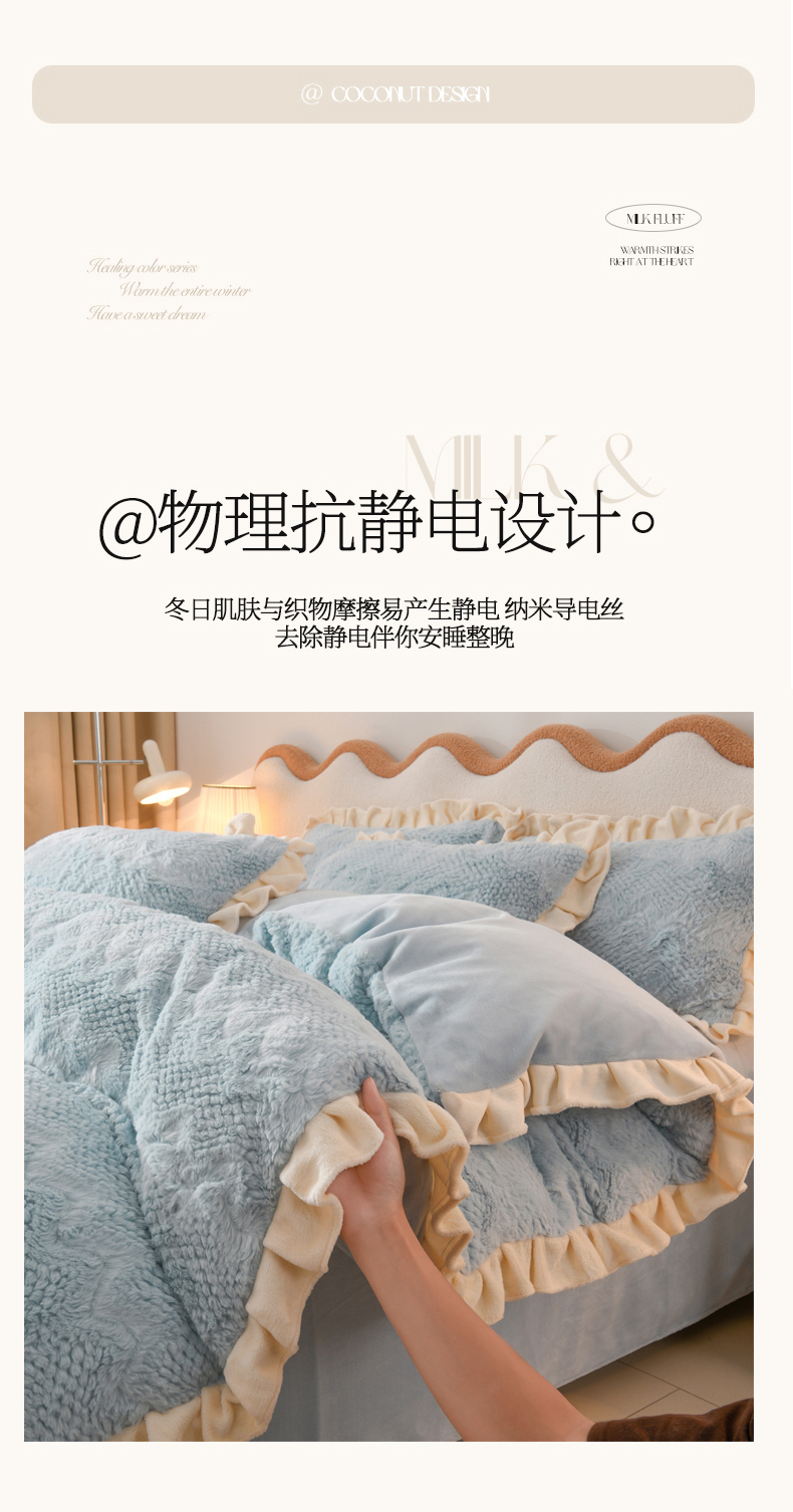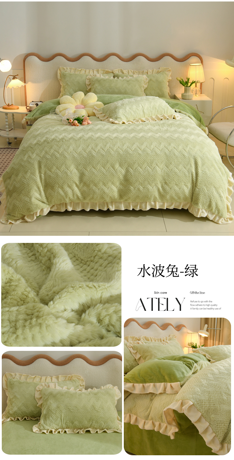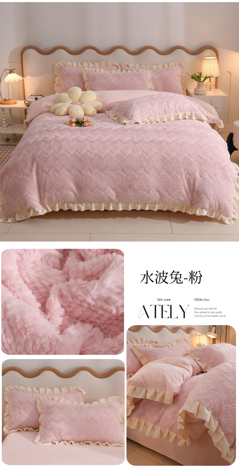 商品名称:优家居工厂店 2026新款加厚兔毛绒四件套 水波兔-蓝