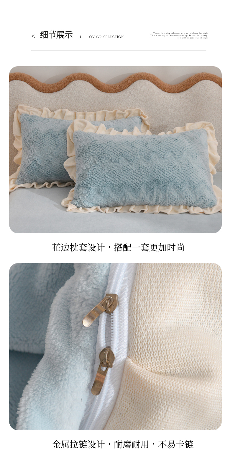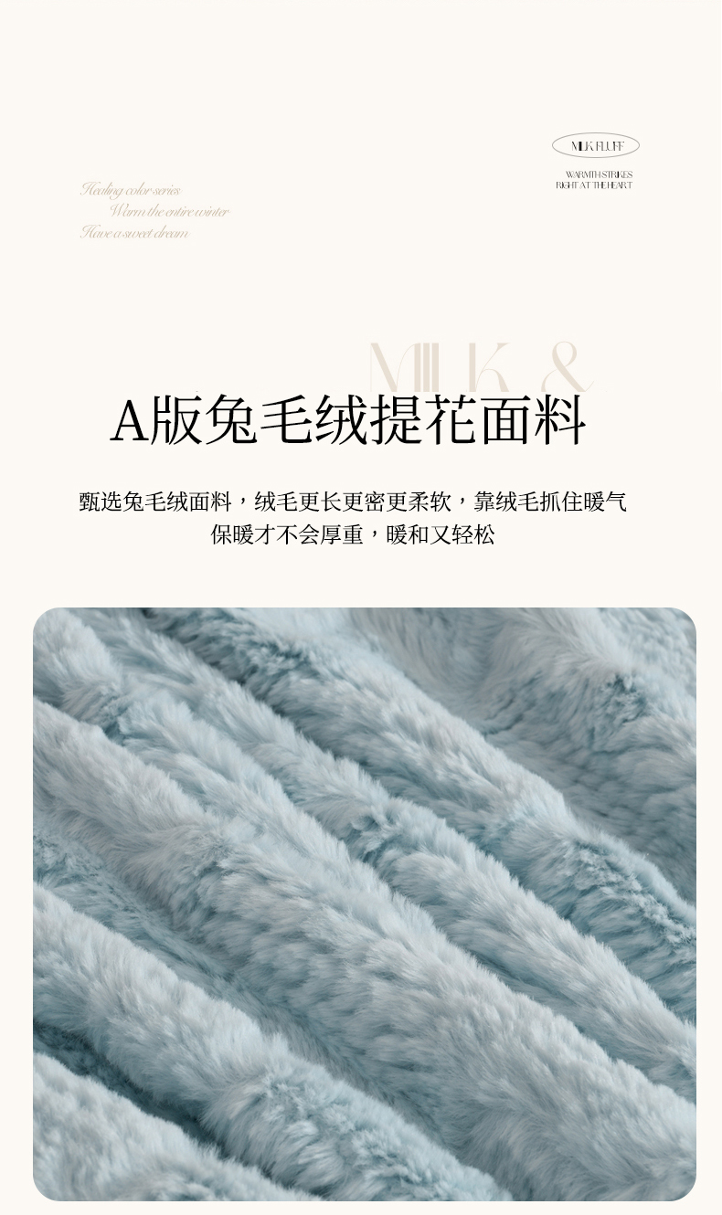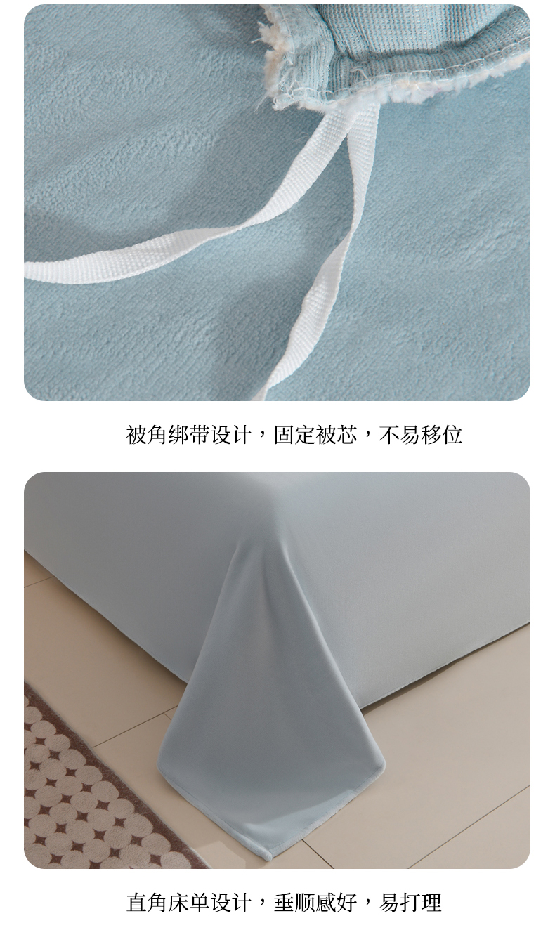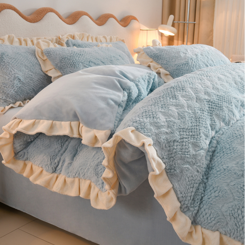 商品名称:优家居工厂店 2026新款加厚兔毛绒四件套 水波兔-蓝