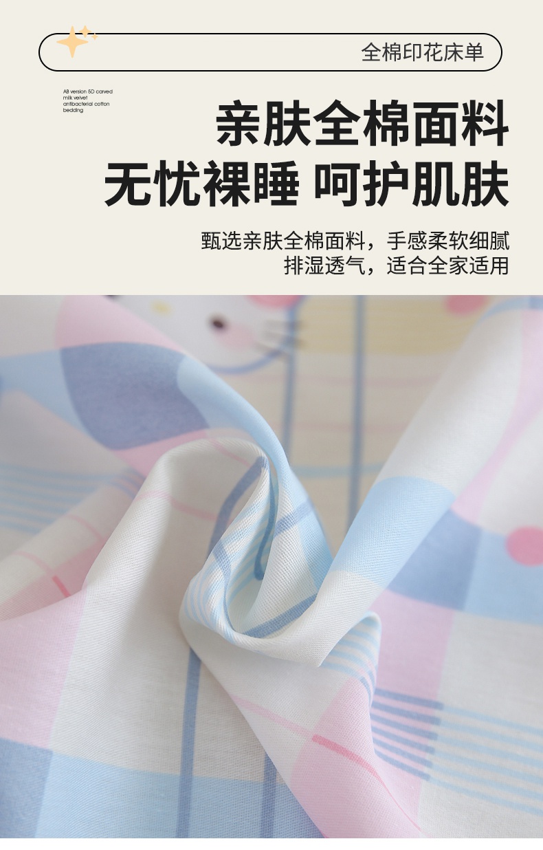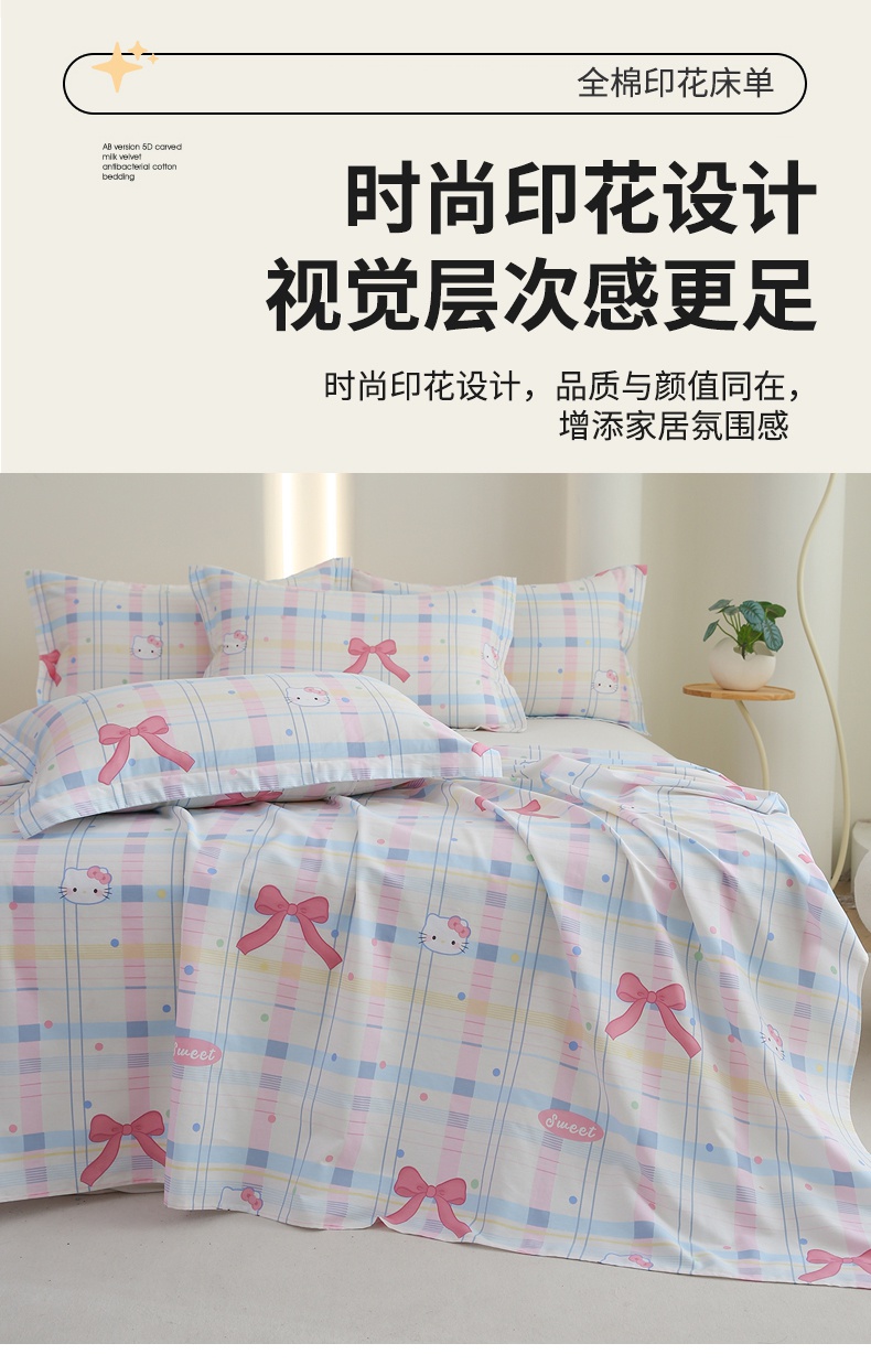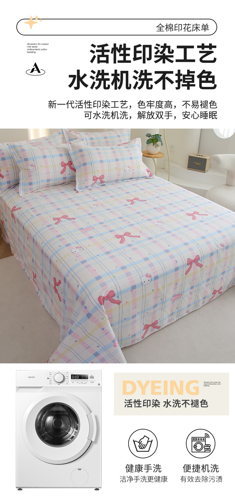 • 91家纺网 家纺一手货源 找家纺 优家居工厂店 2026新款13360纯棉床单单件印花全棉加厚大学生宿舍三件套 奶香猫咪