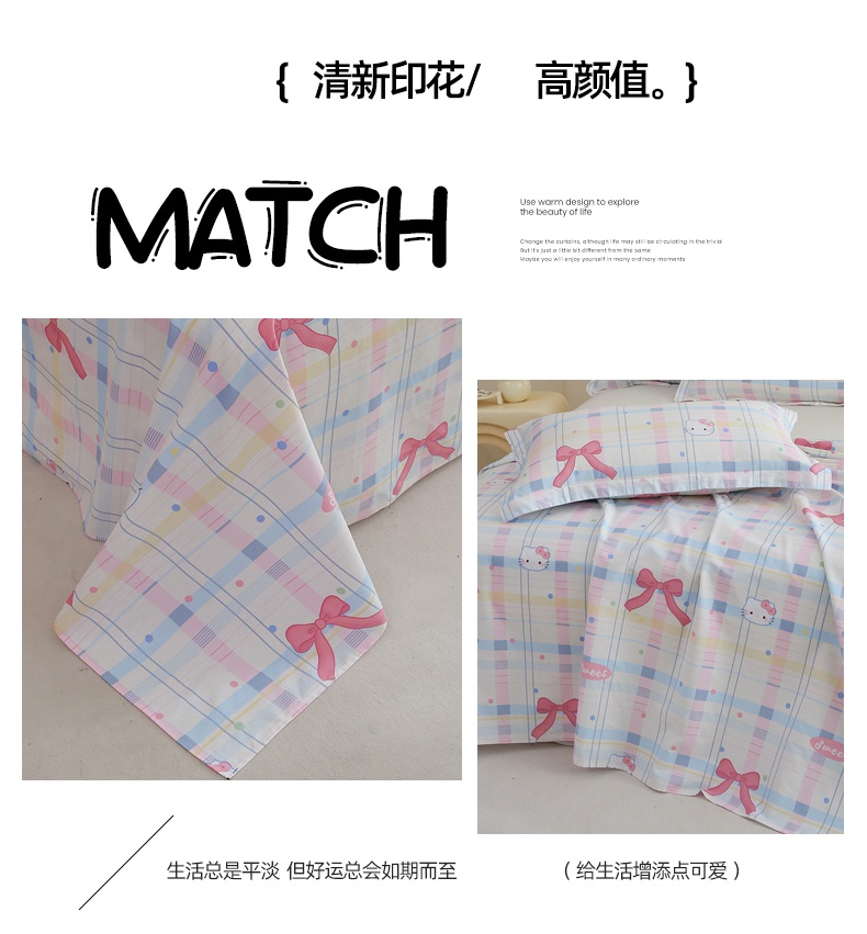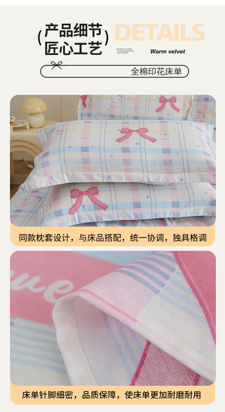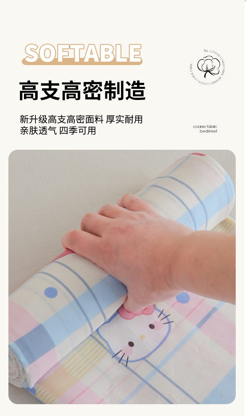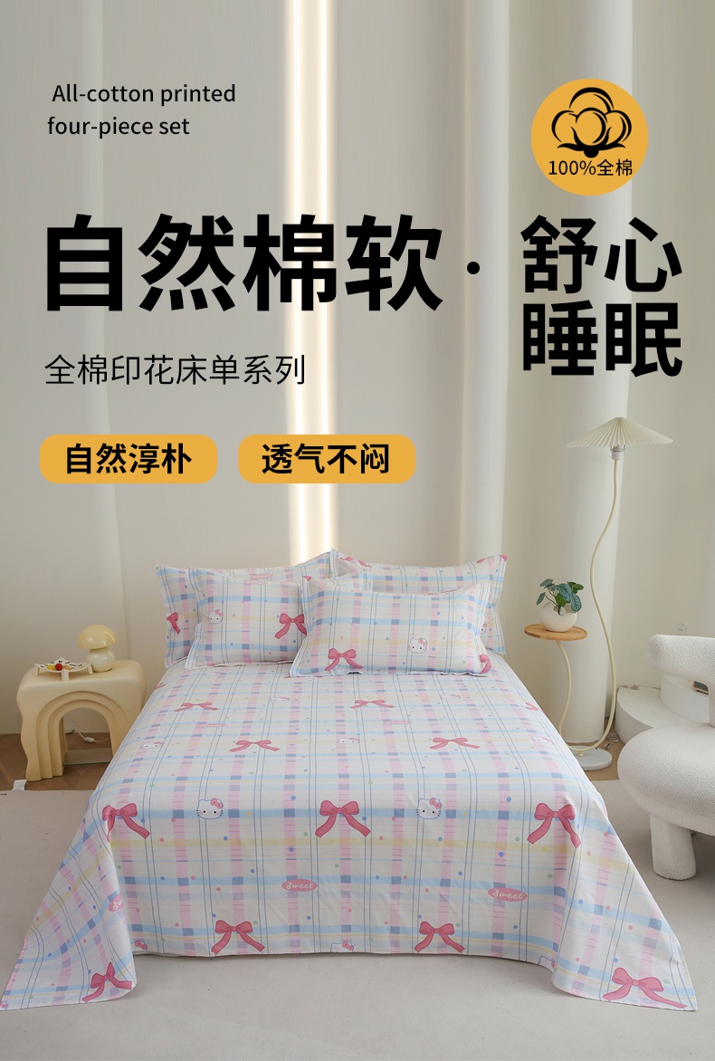 • 91家纺网 家纺一手货源 找家纺 优家居工厂店 2026新款13360纯棉床单单件印花全棉加厚大学生宿舍三件套 奶香猫咪
