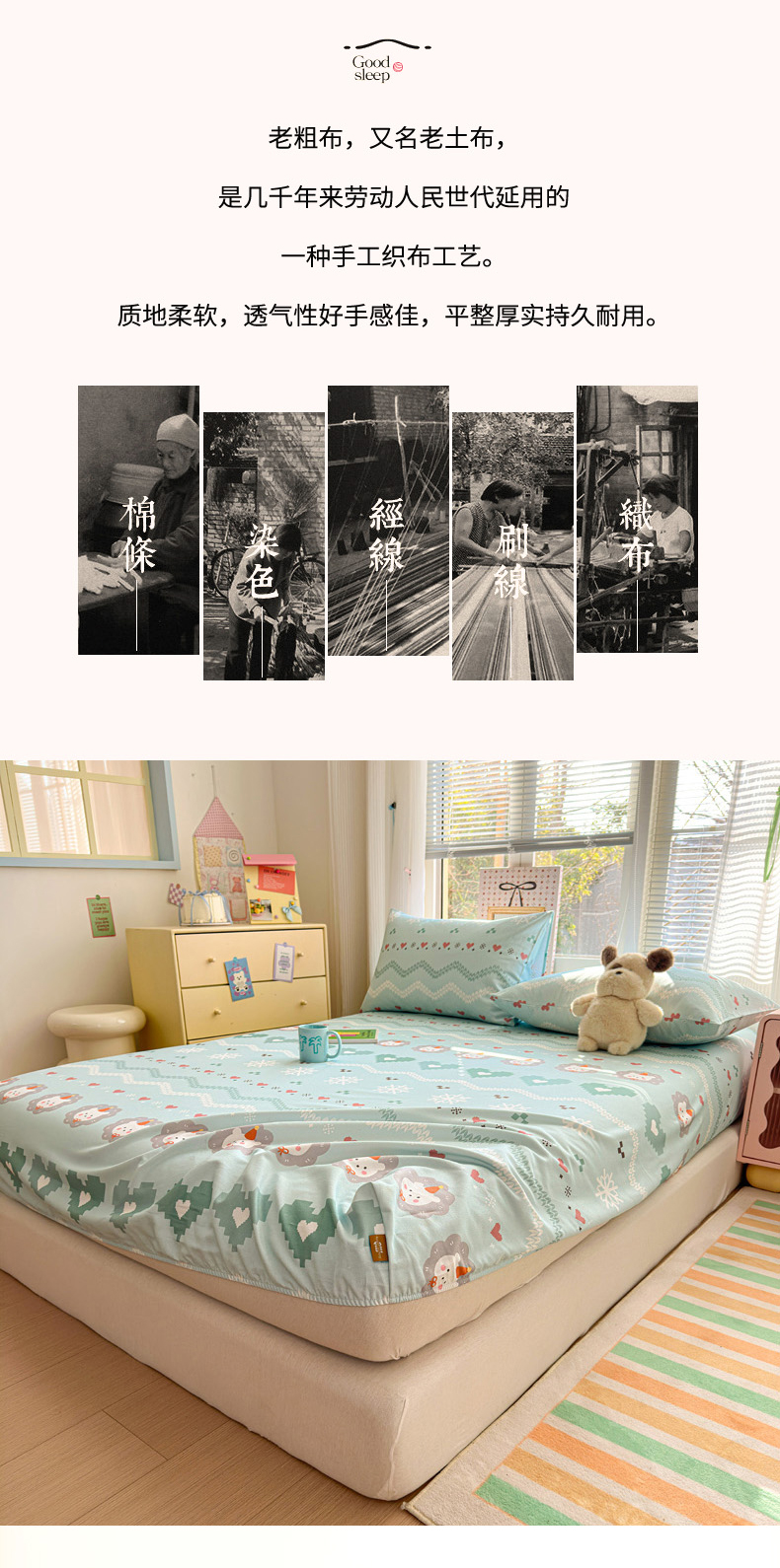 女子家纺 2026新款全棉老粗布床笠 奶酪