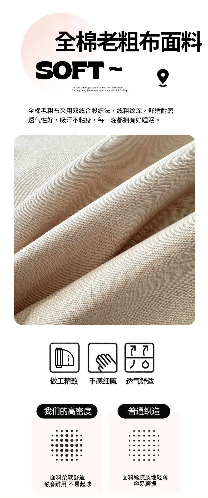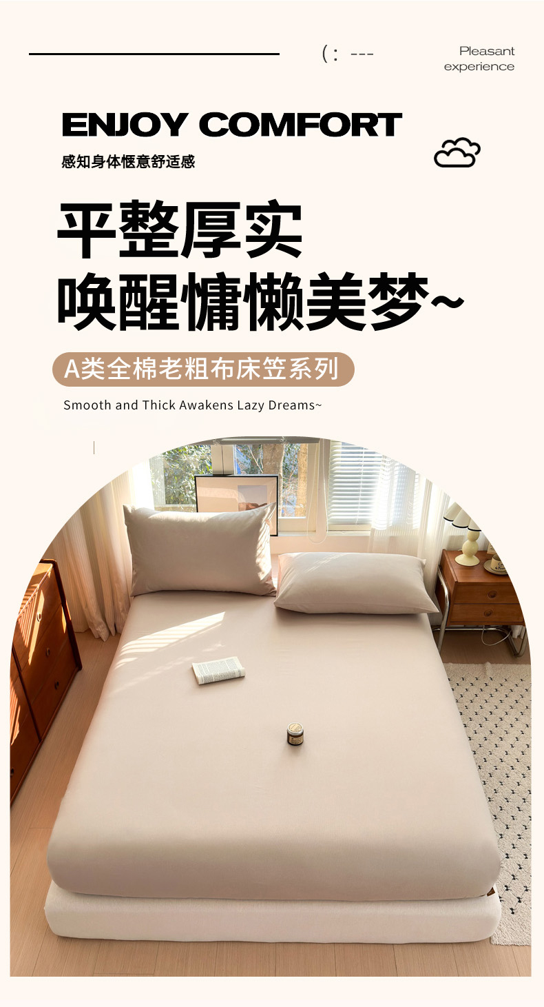 商品名称:女子家纺 2026新款全棉老粗布床笠 亚麻咖
