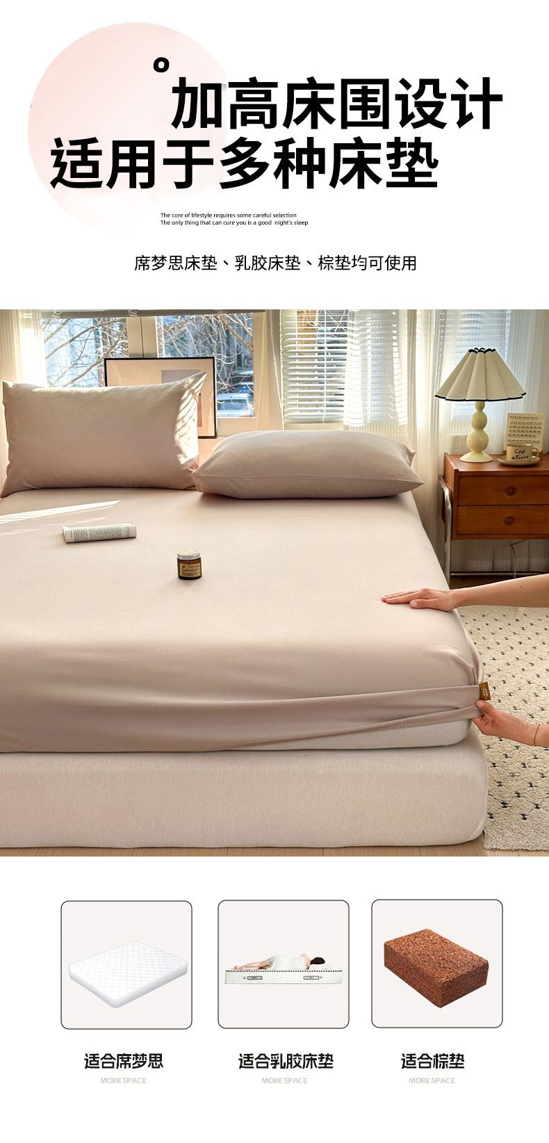 (总)女子家纺 2026春夏新款简爱A类夹棉防水床笠三件套水洗棉7A抗菌磨毛床单保护套,简爱-月光白,简爱-黛蓝,简爱-淡水蓝,简爱-密合粉,简爱-暮云灰,简爱-奶咖,简爱-清雅绿,简爱-深空灰