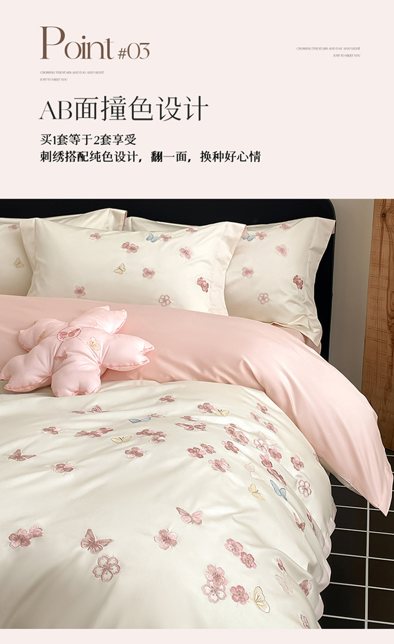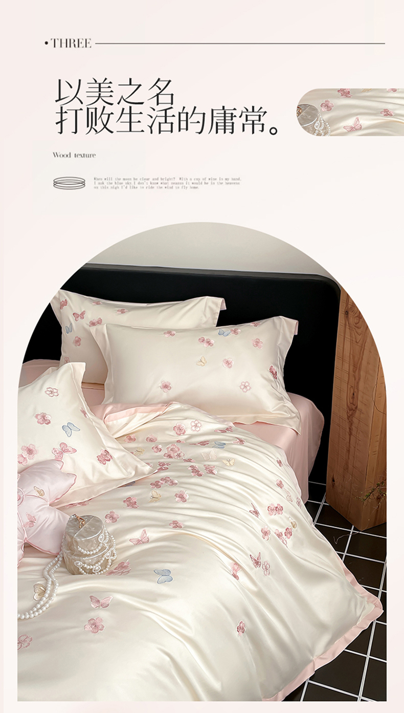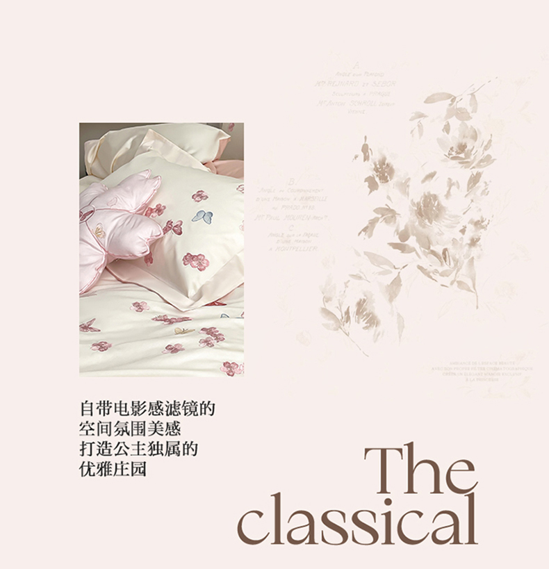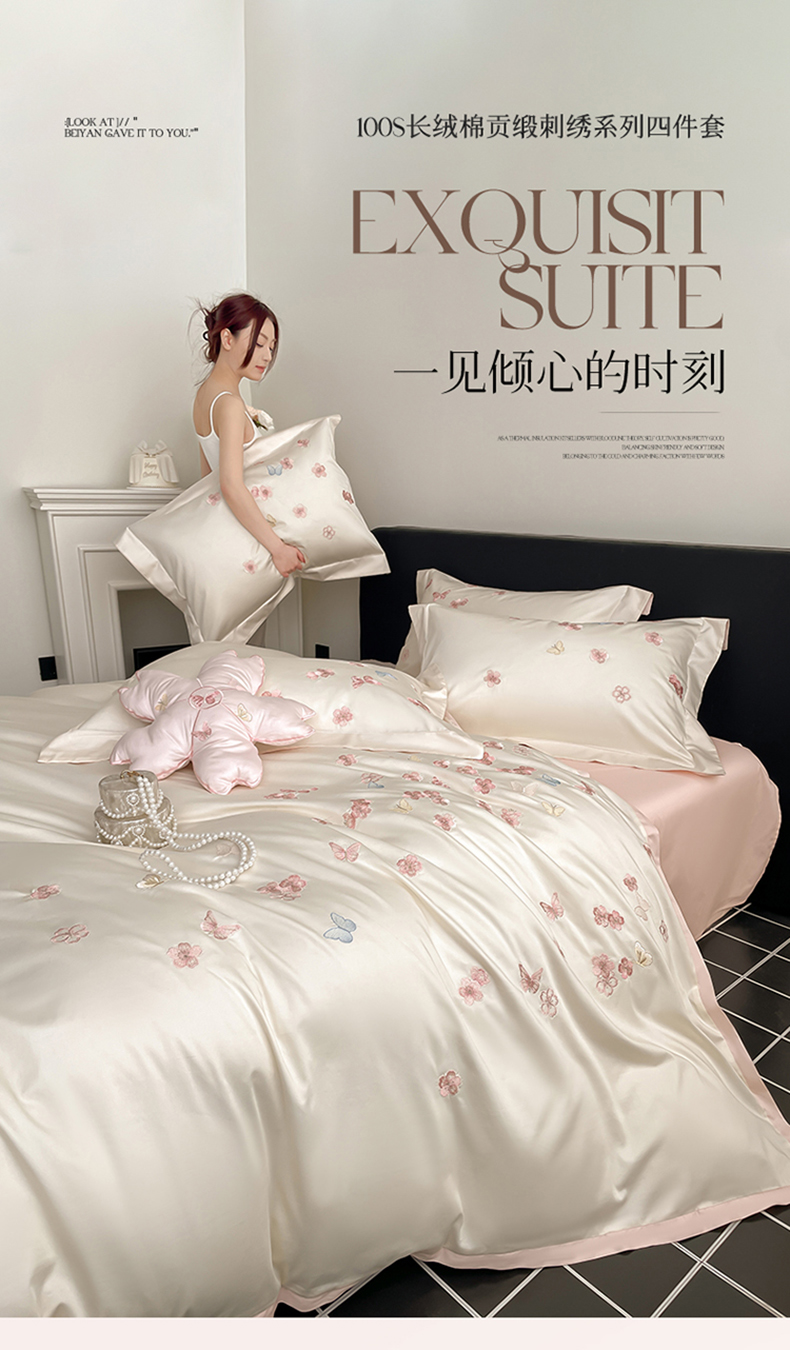 当前位置: 91家纺网 > 商品网购 > 床品套件 > 四件套 > 长绒棉四件套 > (总)蓝米卡夫 2026春季新款-100S长绒棉贡缎刺绣系列四件套-繁花福语(礼盒)