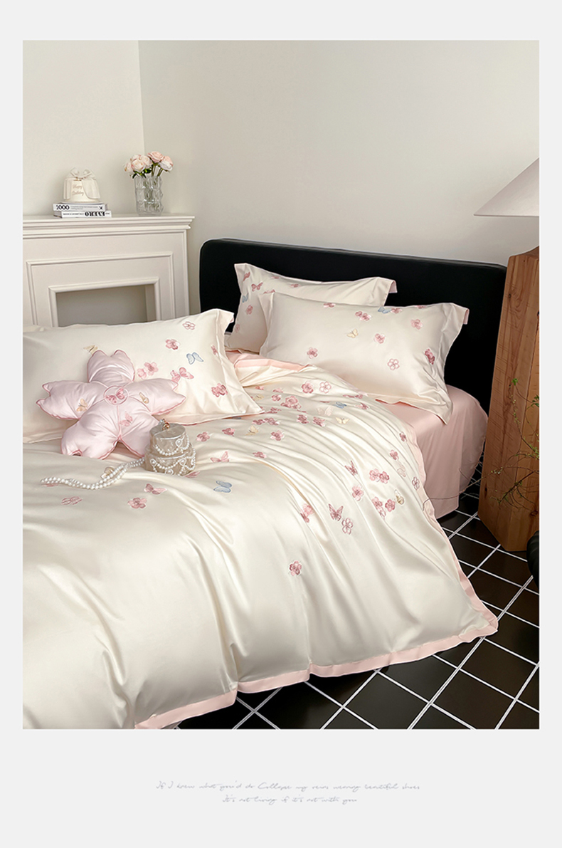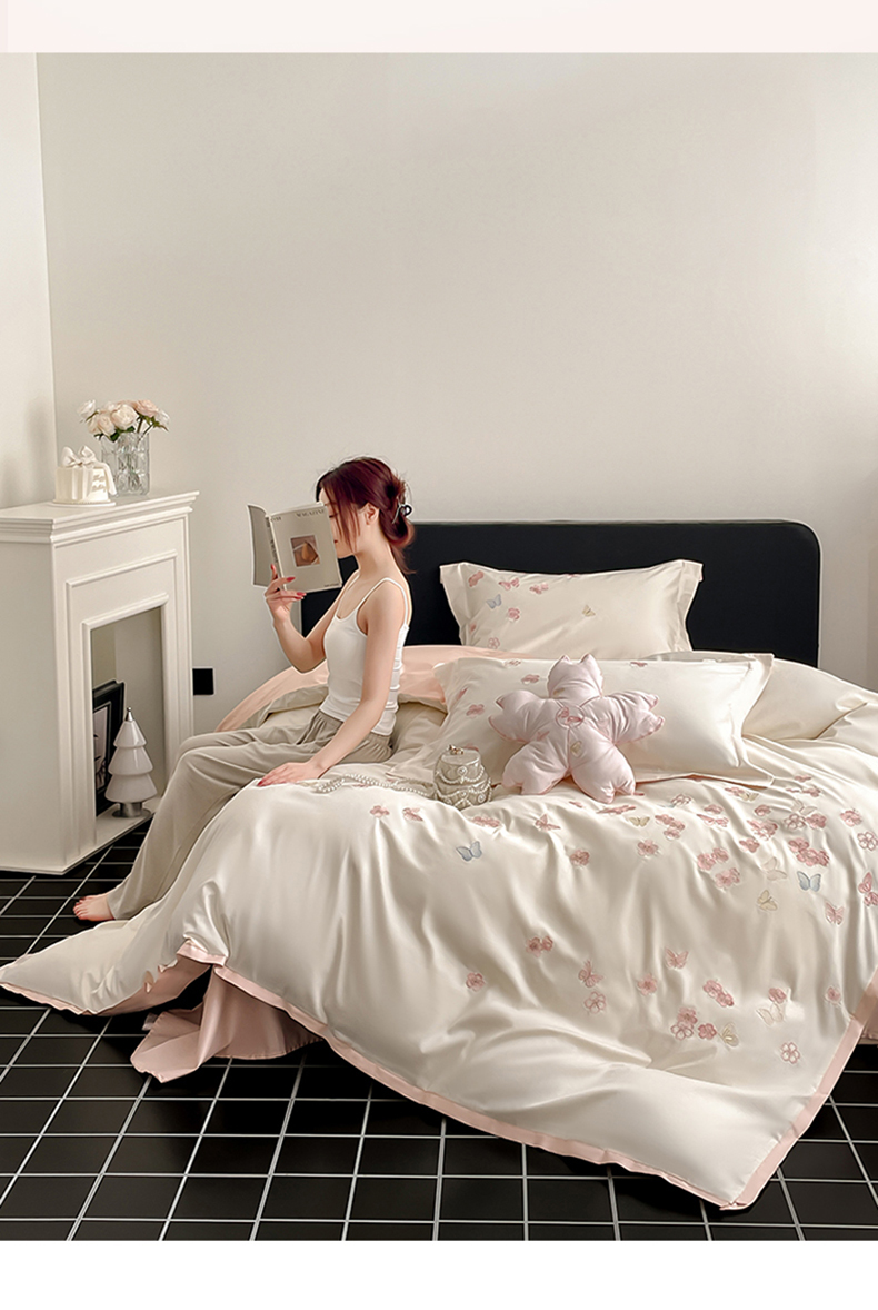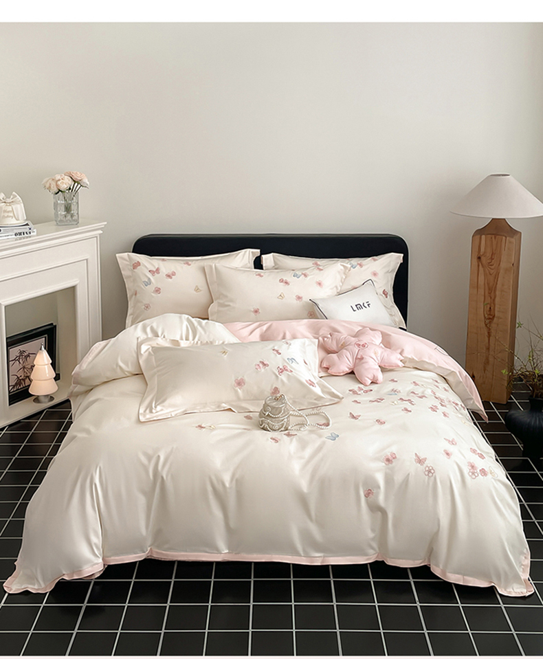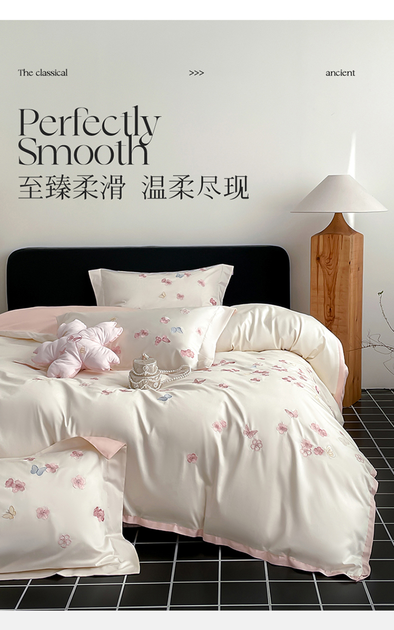 当前位置: 91家纺网 > 商品网购 > 床品套件 > 四件套 > 长绒棉四件套 > (总)蓝米卡夫 2026春季新款-100S长绒棉贡缎刺绣系列四件套-繁花福语(礼盒)
