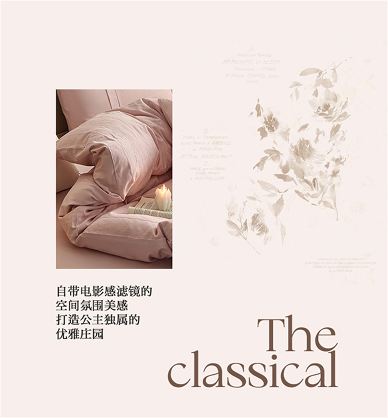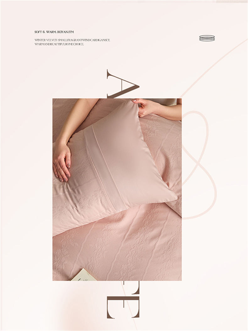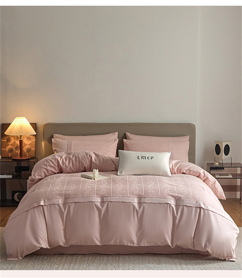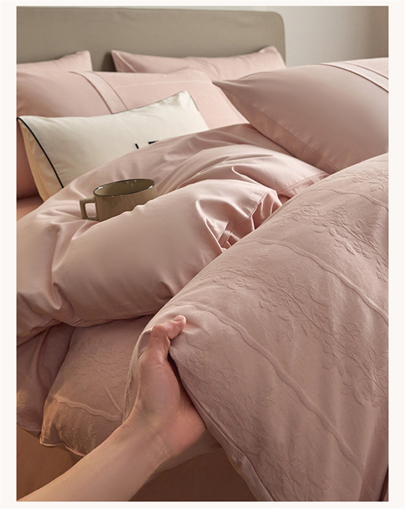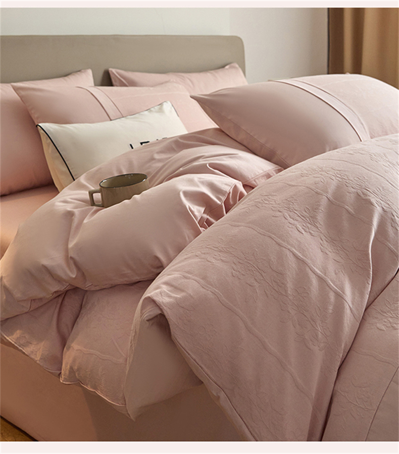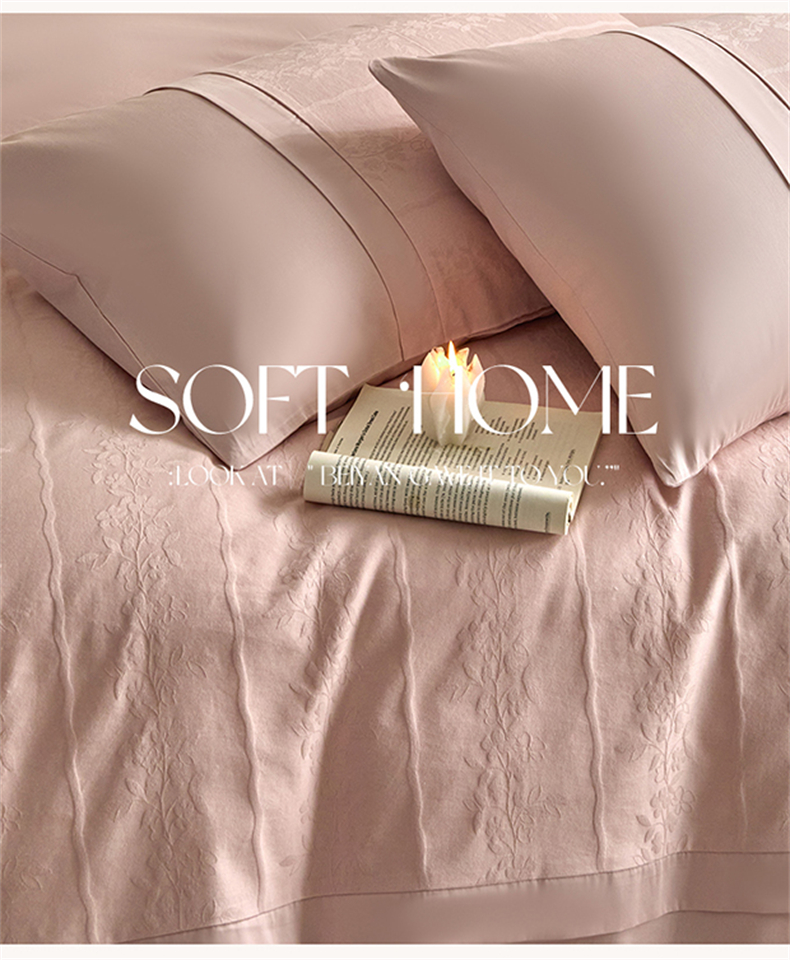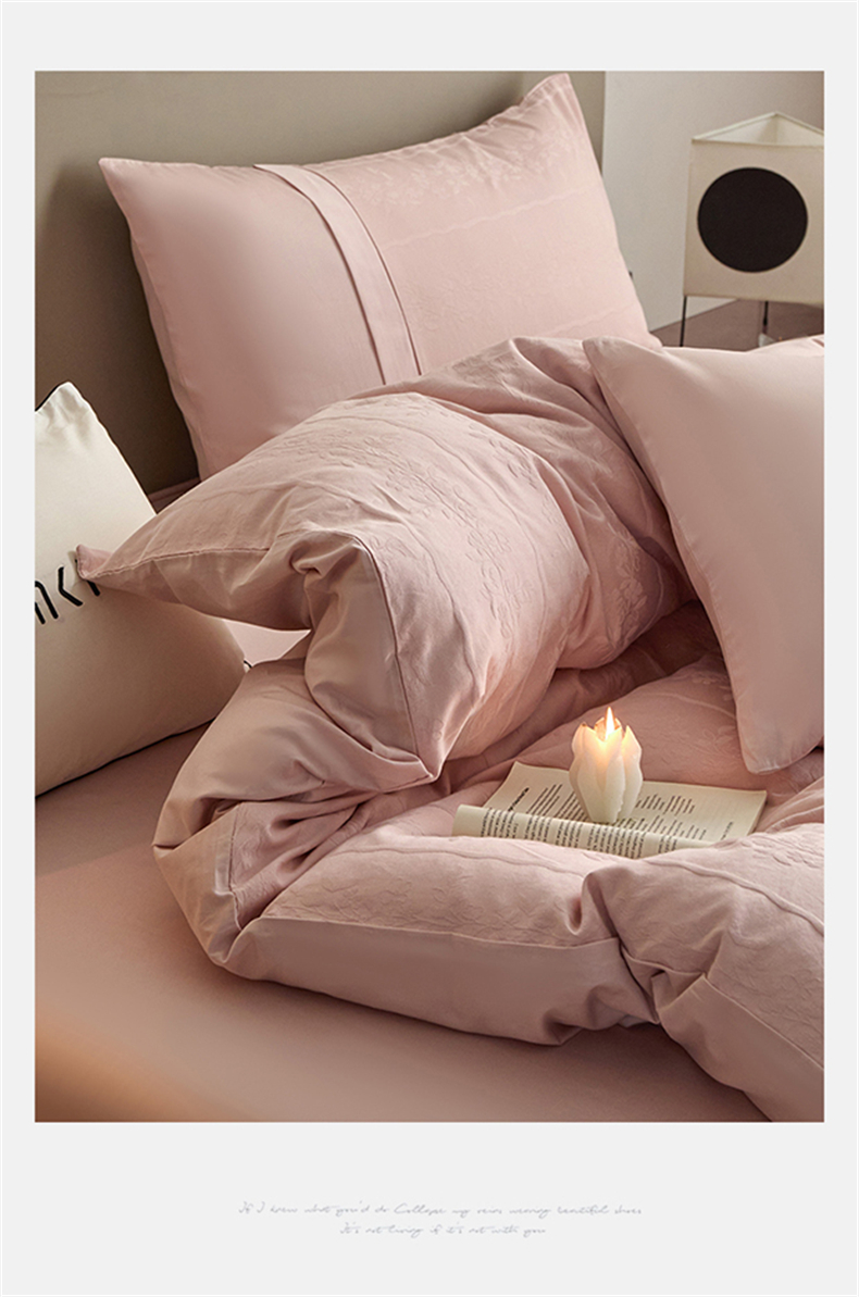 蓝米卡夫 2026春季新款-100S全棉亮面提花贡缎长绒棉拼接款(礼盒) 浪漫情缘-唯美粉