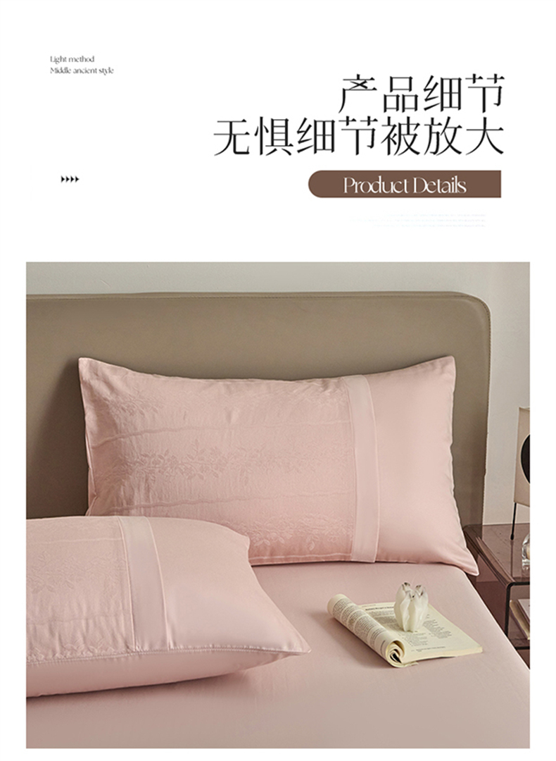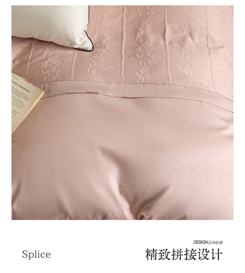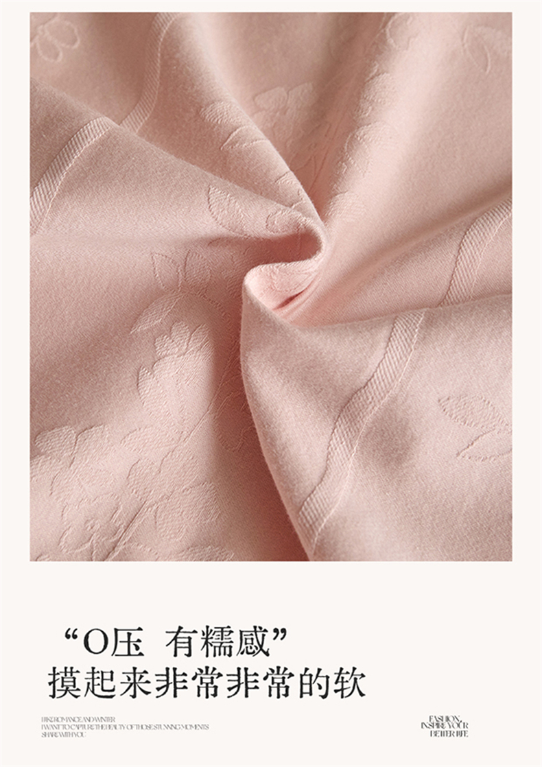 商品名称:蓝米卡夫 2026春季新款-100S全棉亮面提花贡缎长绒棉拼接款(礼盒) 浪漫情缘-唯美粉