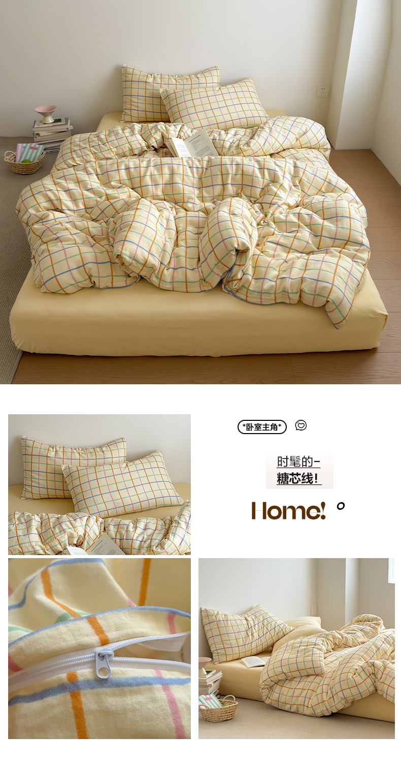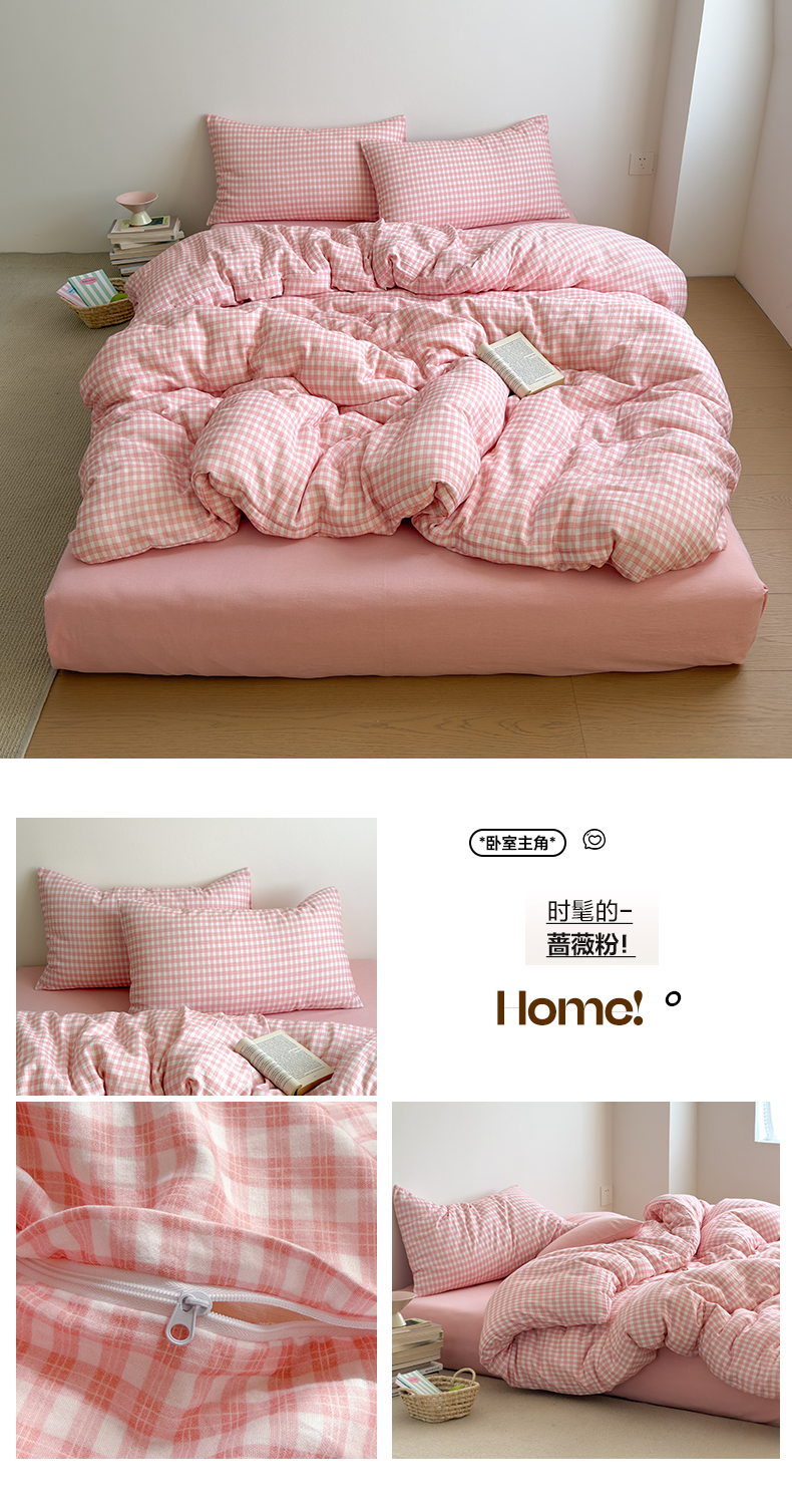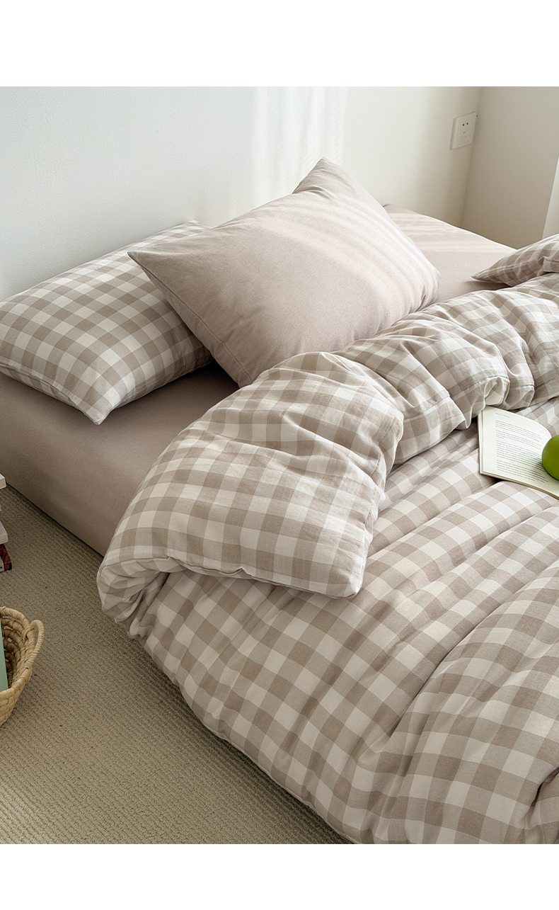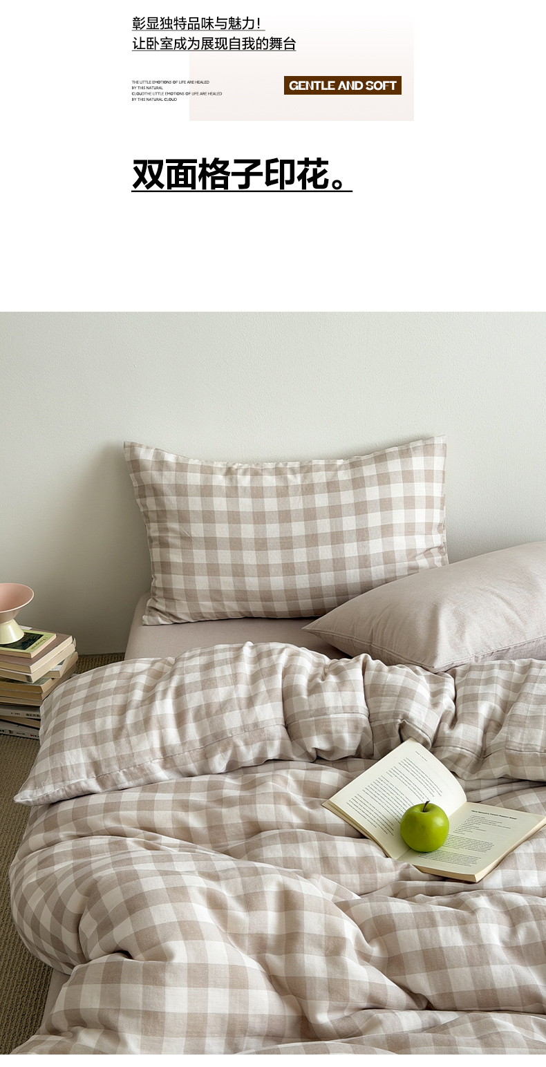 (总)玖弘家居 2026新款全棉双层纱格子四件套(默认格子枕套)