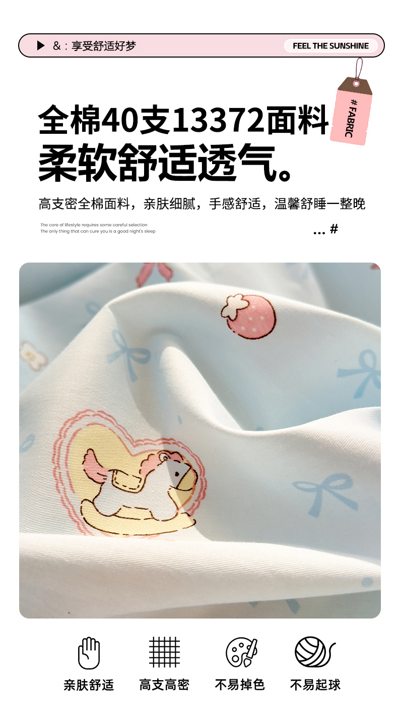 • 91家纺网 家纺一手货源 找家纺 (总)DoDo 兜兜 2026年全棉纯棉可爱卡通单被套 被套单件,可爱星人-白,可爱星人-黄,棒棒糖女孩,薄荷小兔,彩虹小马驹,草莓小马-粉,草莓小马-蓝,点点小狗,动物方舟,费尔岛小熊,机灵猫,蓝色小象,麦克狮,棉花糖兔兔,软软熊与欢欢狗,森林熊崽崽,甜酱小猫,跳跳象,小福瓜,小马哒哒,星星兔的梦境,熊抱阳光,熊猫卡皮,旋转木马之恋,圆滚滚的梦,云朵小飞马,早安跳跳兔