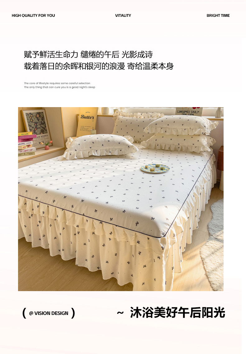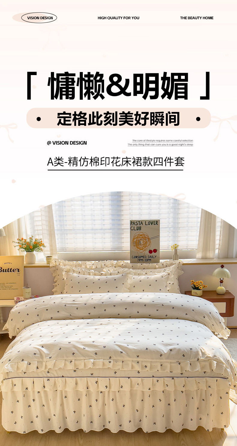 当前位置: 91家纺网 > 商品网购 > 床品套件 > 四件套 > 其它四件套 > 优家居工厂店 2026新款精仿棉床裙四件套水洗棉韩版公主风花边床裙单被套直播外贸定制 情人节