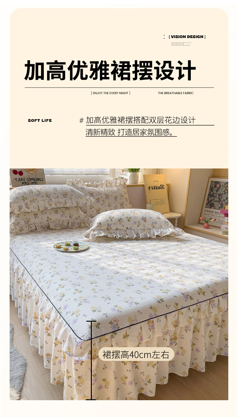 当前位置: 91家纺网 > 商品网购 > 床上用品 > 床裙 > 优家居工厂店 2026新款精仿棉床裙三件套水洗棉韩版公主风花边床裙直播外贸定制 海芋恋
