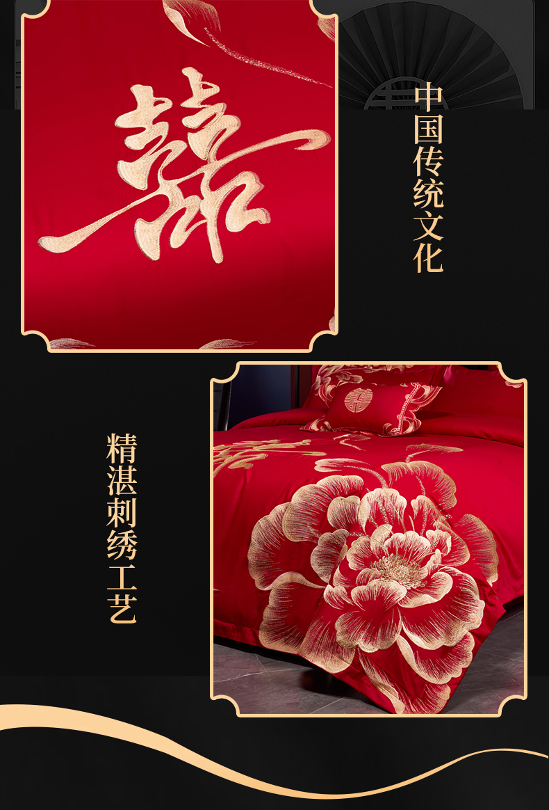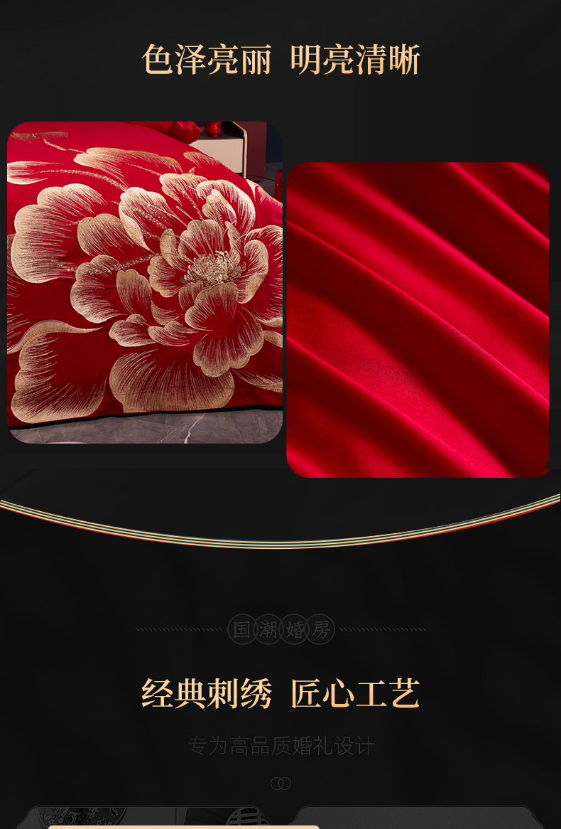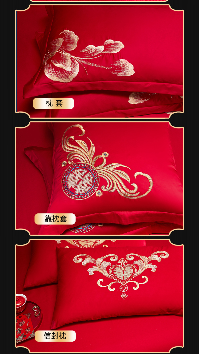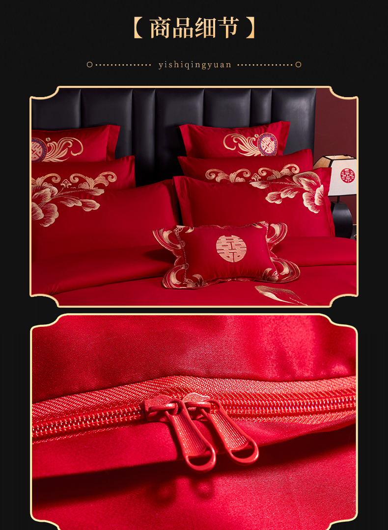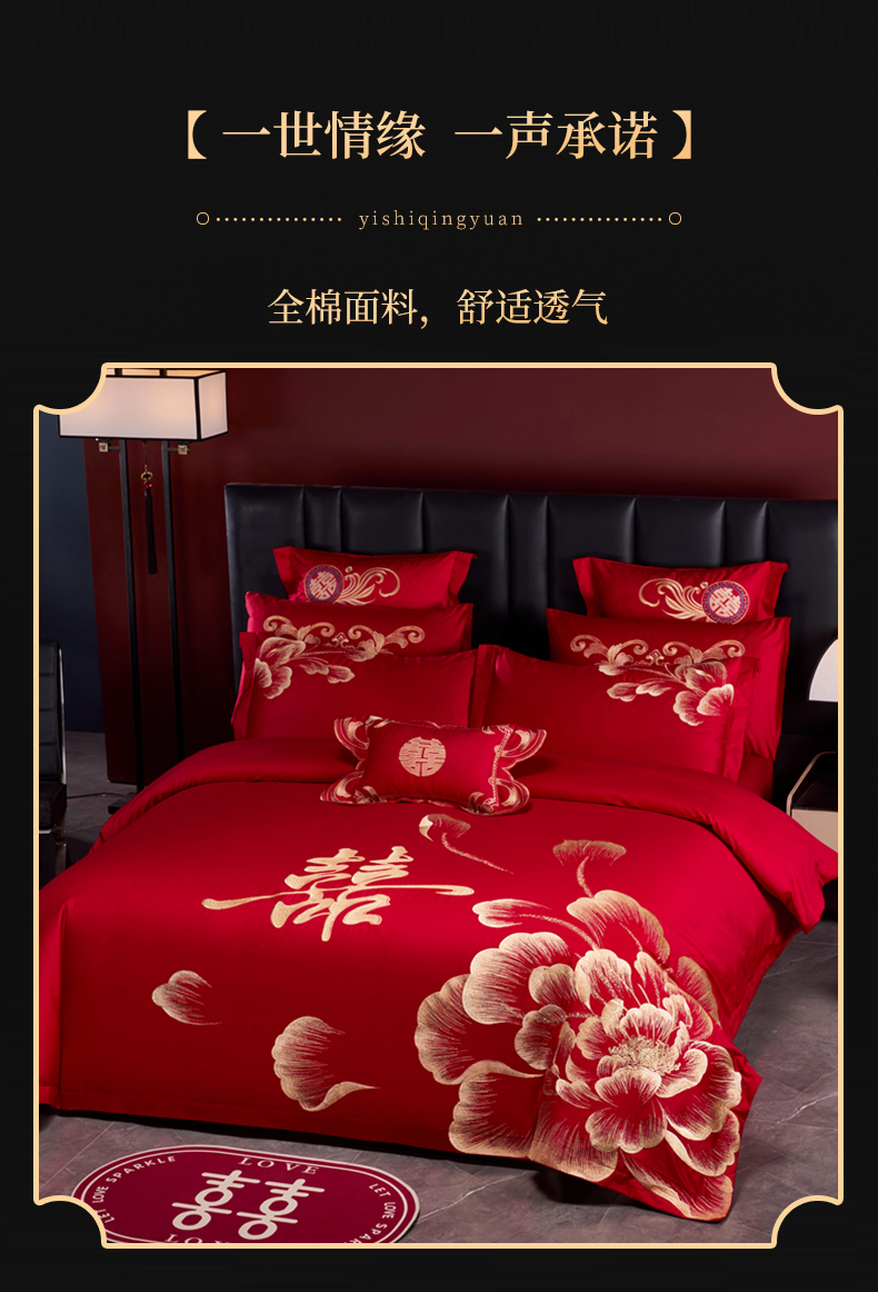 当前位置: 91家纺网 > 商品网购 > 床品套件 > 四件套 > 婚庆四件套 > 慕她家纺 2026年全棉纯棉婚庆四件套大红色刺绣结床上用品 花海情深