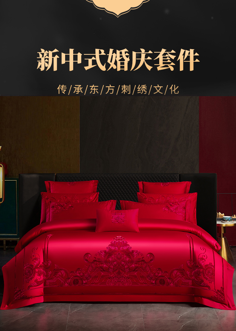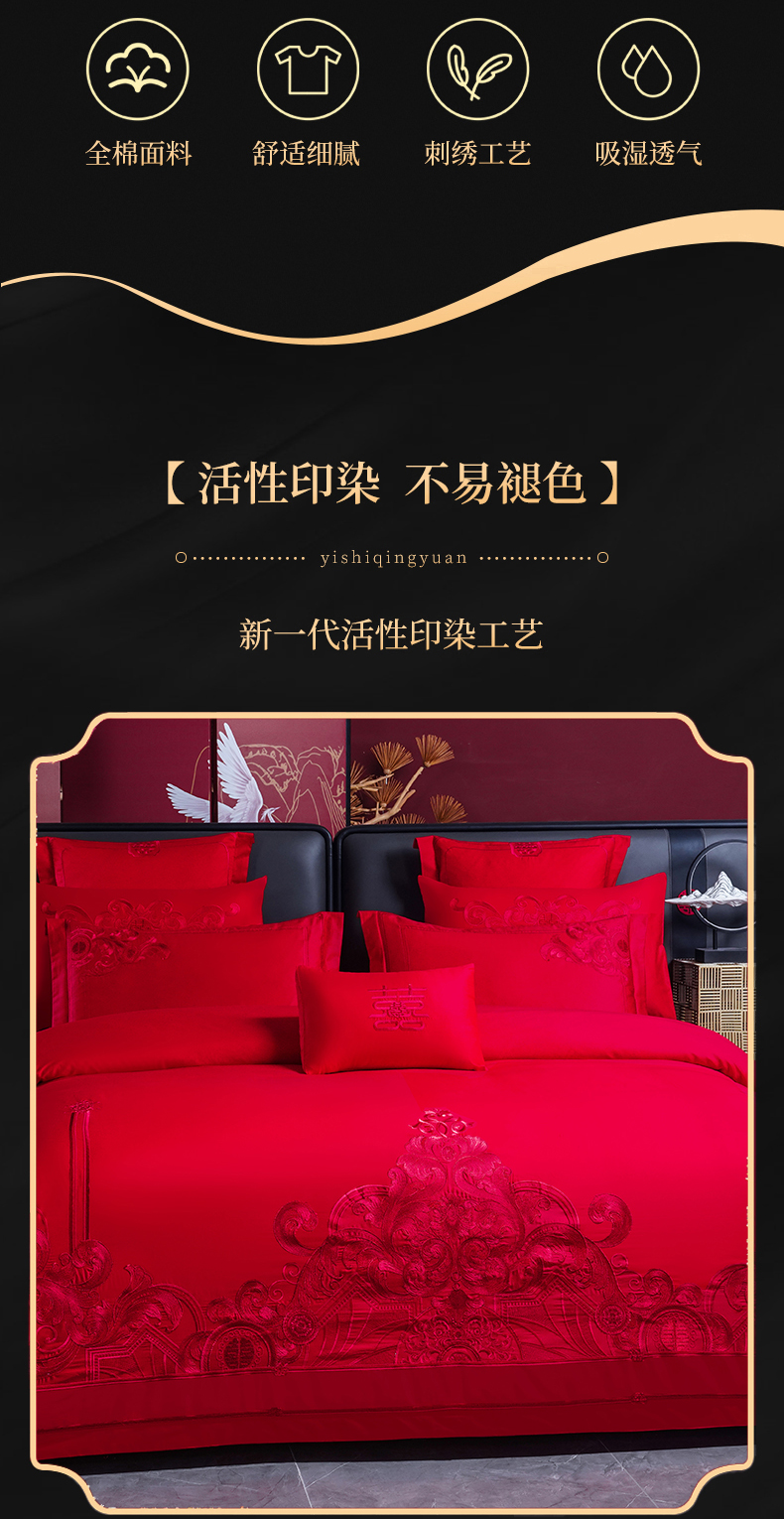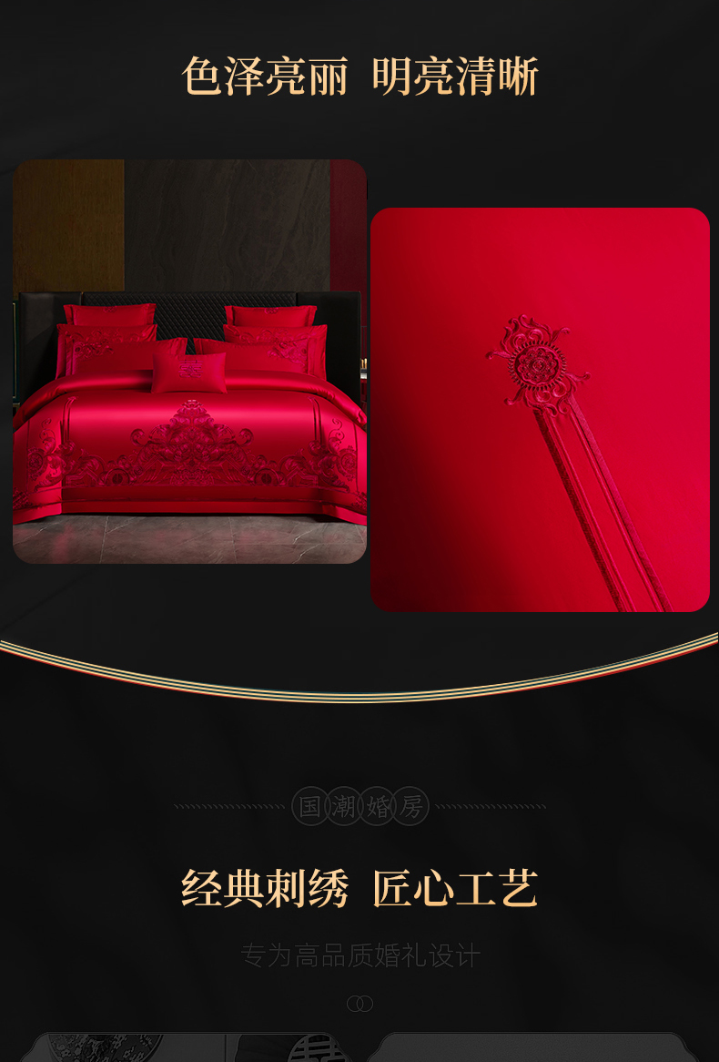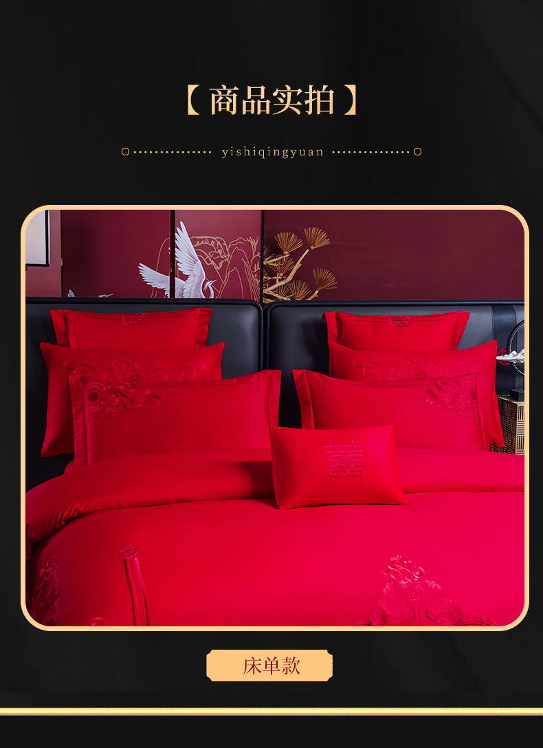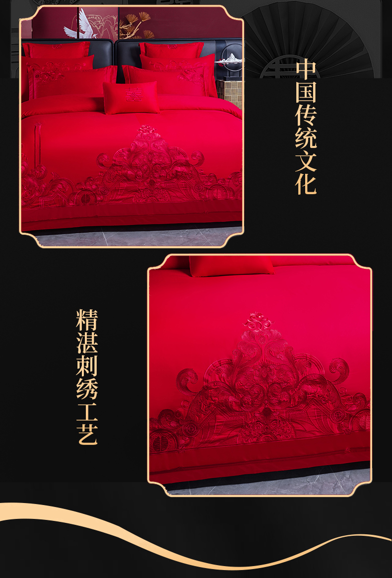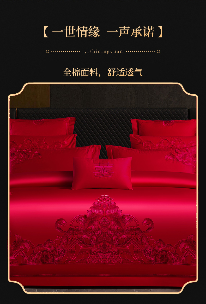 当前位置: 91家纺网 > 商品网购 > 床品套件 > 四件套 > 婚庆四件套 > 慕她家纺 2026年全棉纯棉婚庆四件套大红色刺绣结床上用品 宫廷盛意