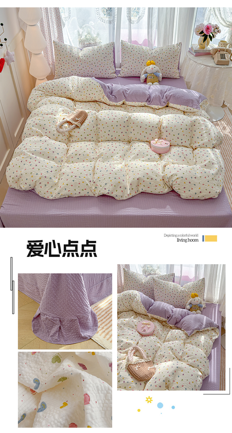 铺尚美家纺 2026春夏新品高克重A类泡芙纱泡泡皱皱纱四件套 浅唱花语