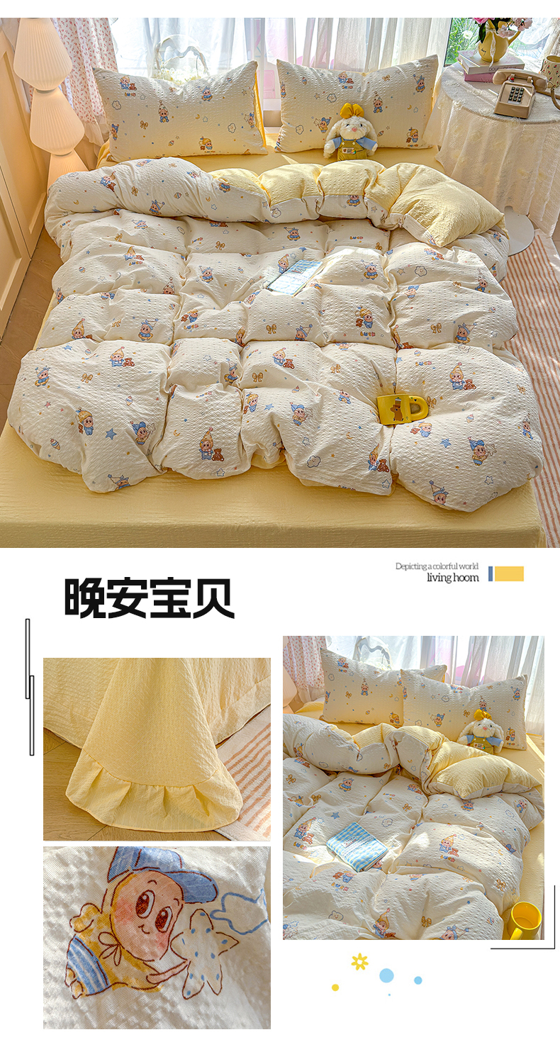 (总)铺尚美家纺 2026新款A类古法水洗仿棉云感纱四件套,萌兔小熊,安娜,波点熊,布丁狗,草莓啵啵,草莓熊-粉,草莓熊-蓝,丁香紫,格纹萌友团,格子熊,狗狗乐园,乖乖狗-灰,乖乖狗-玉,花园小猫,猫狗狂欢夜,玫瑰庄园,莫兰迪,奶绿牛油果,蔷薇花语,条纹小熊,小马星河,小奶团,星芒啵啵熊,雪花世界,英伦小木马,紫罗兰