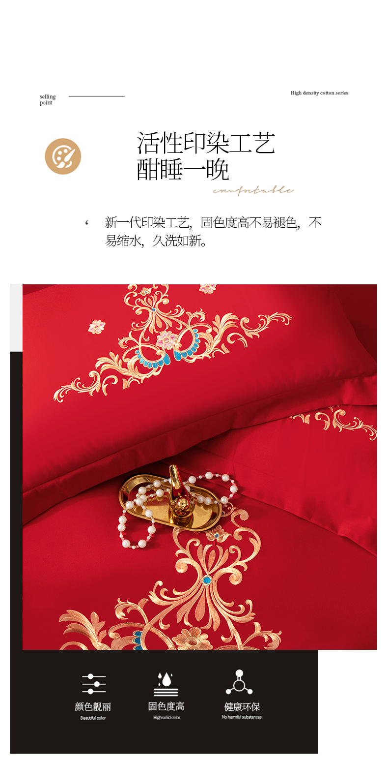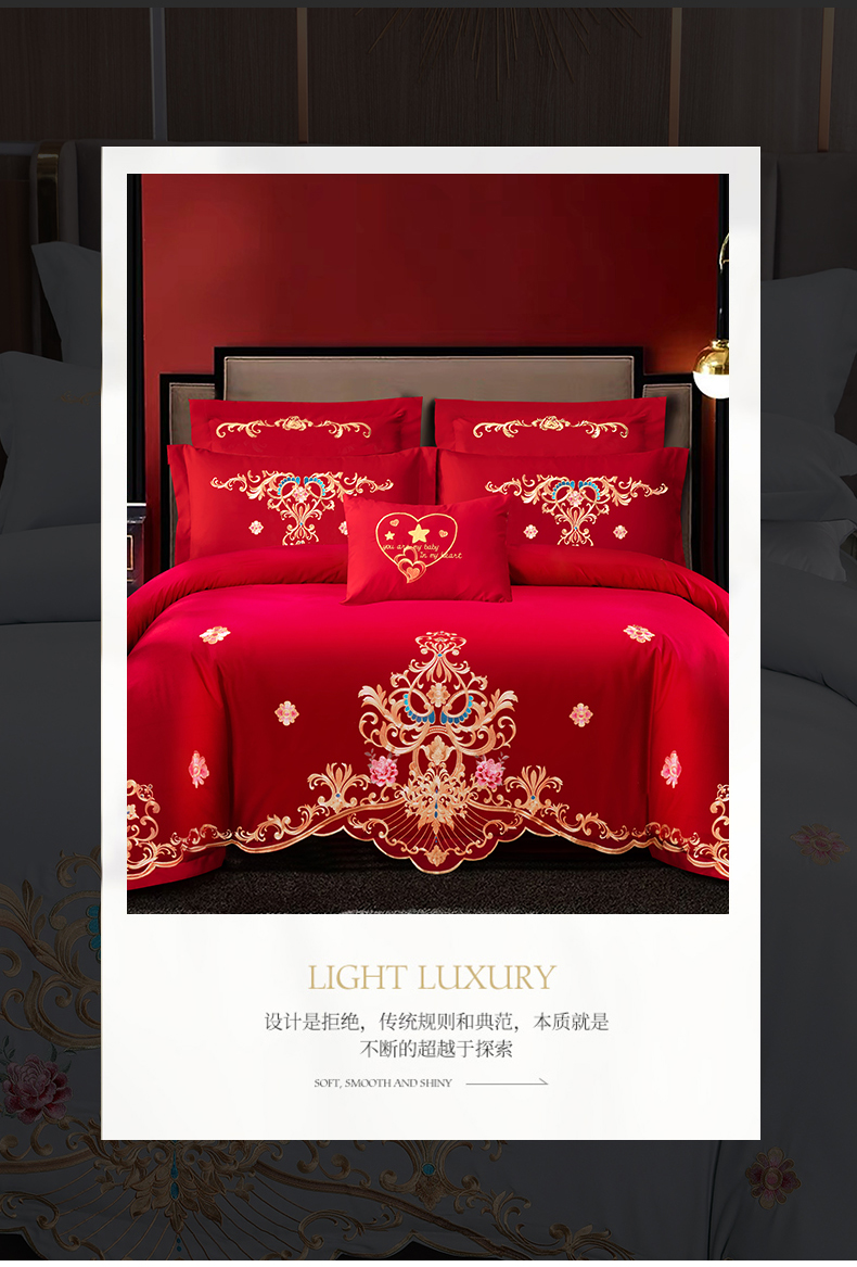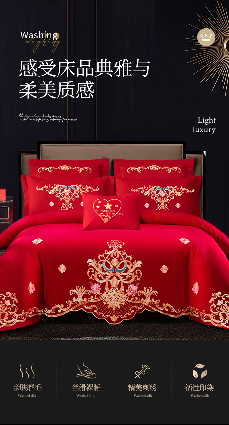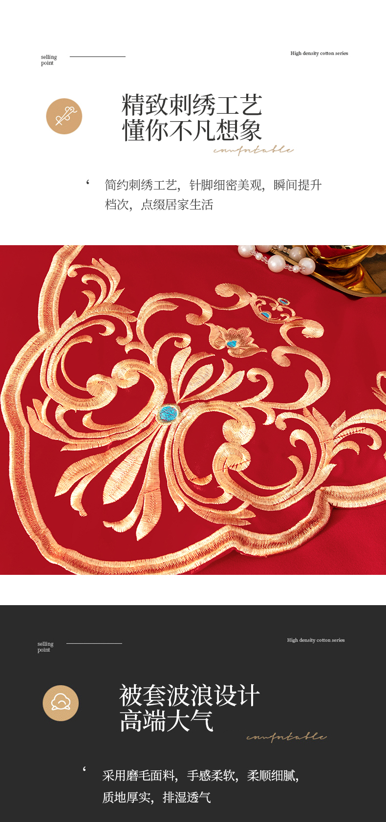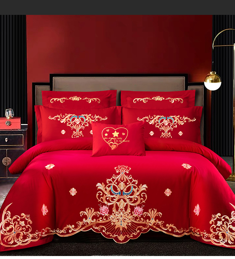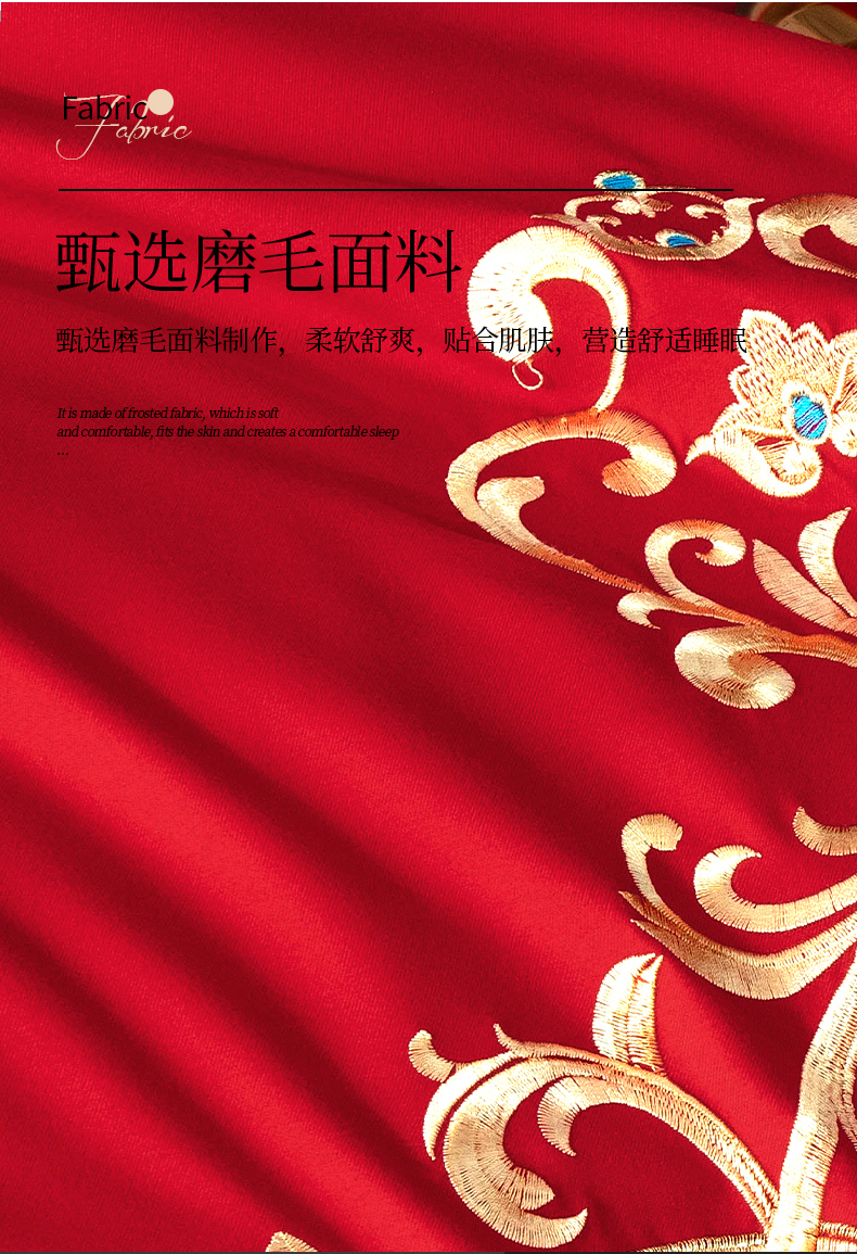 当前位置: 91家纺网 > 商品网购 > 床品套件 > 四件套 > 婚庆四件套 > 慕她家纺 2026年磨毛亲肤棉婚庆四件套大红色刺绣结床上用品 盛世庄园 大红