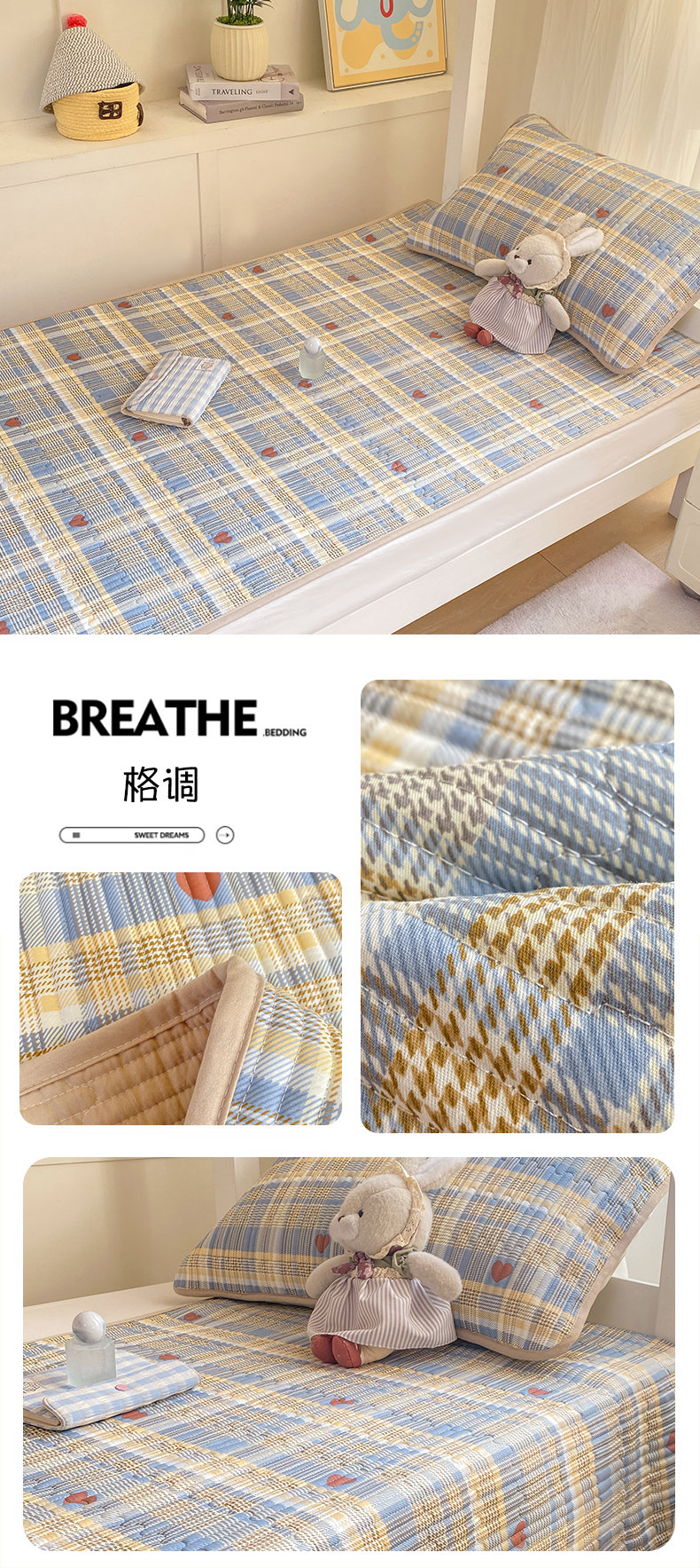 • 91家纺网 家纺一手货源 找家纺 康纳利 2026新款全棉床盖学生夹棉薄款床盖宿舍上下铺床垫三件套四季通用 萌小福