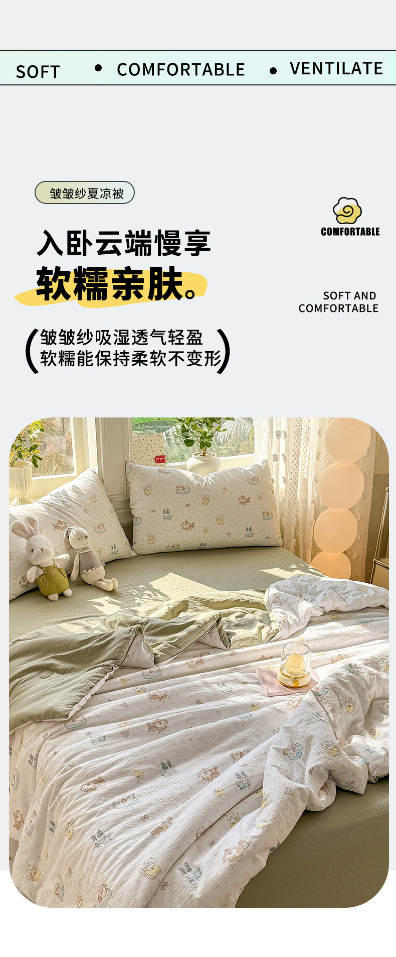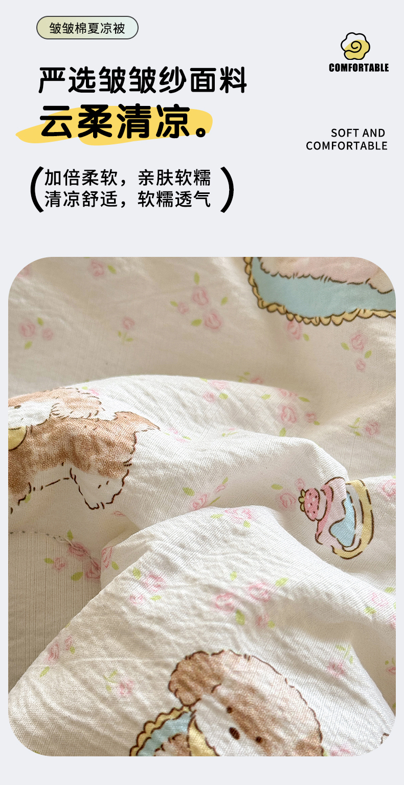 • 91家纺网 家纺一手货源 找家纺 丽美人家纺 2026春夏新款简单款皱皱纱夏被夏凉被空调被 贝拉