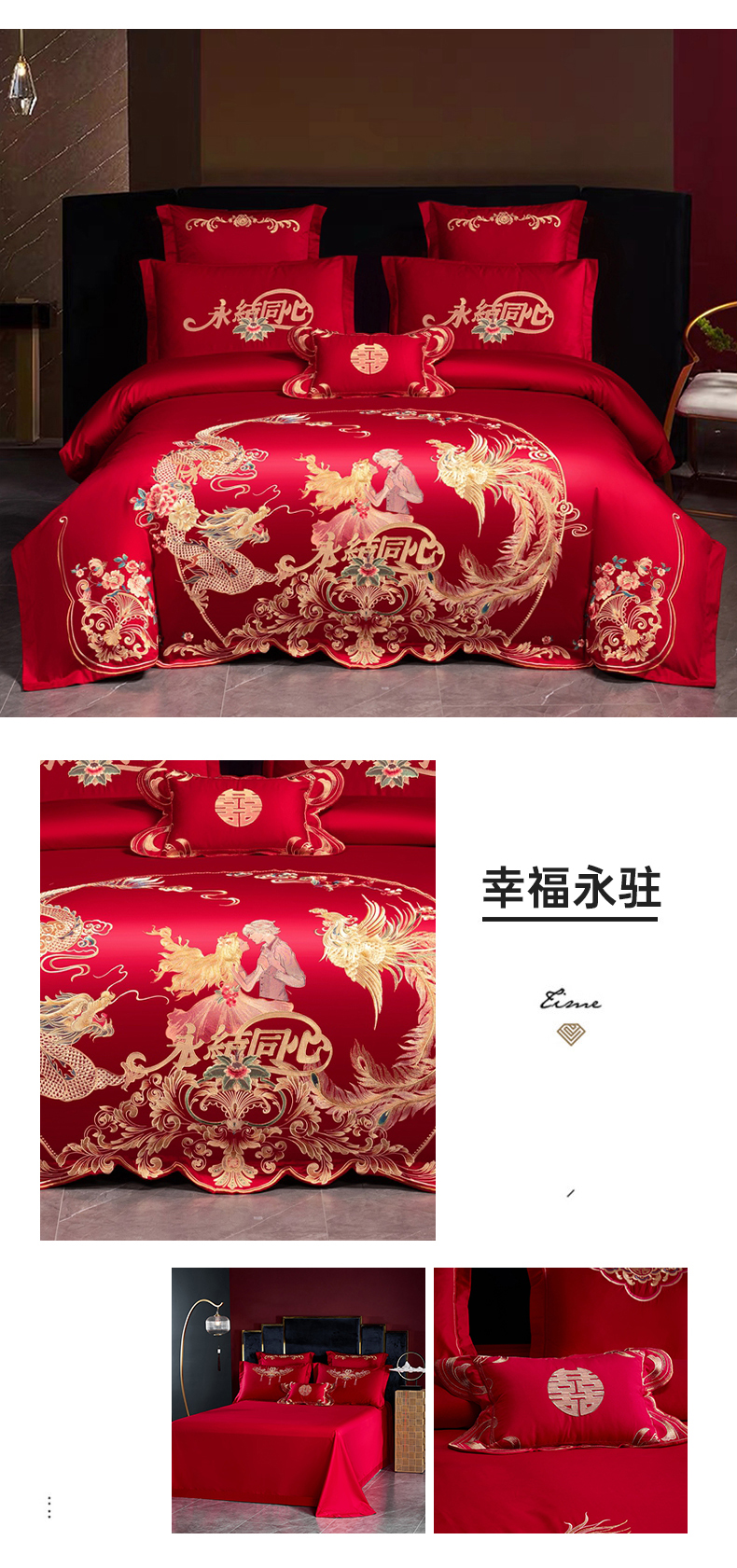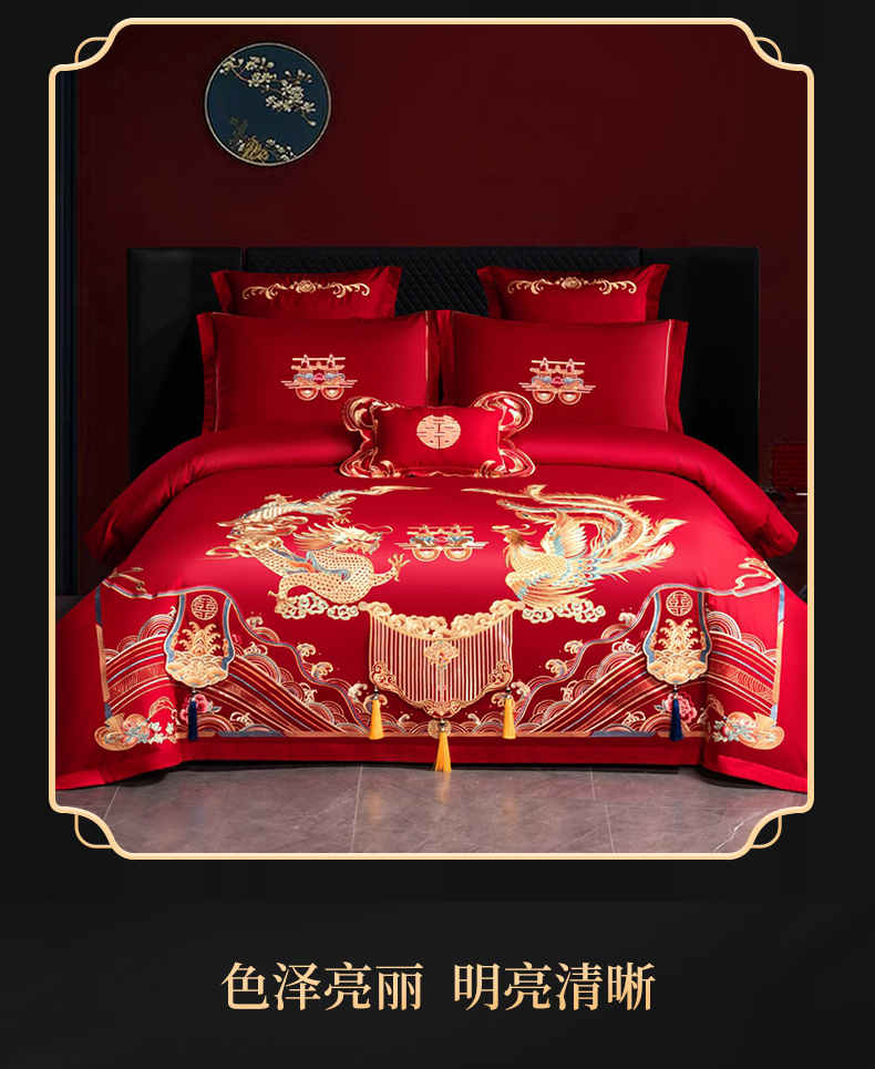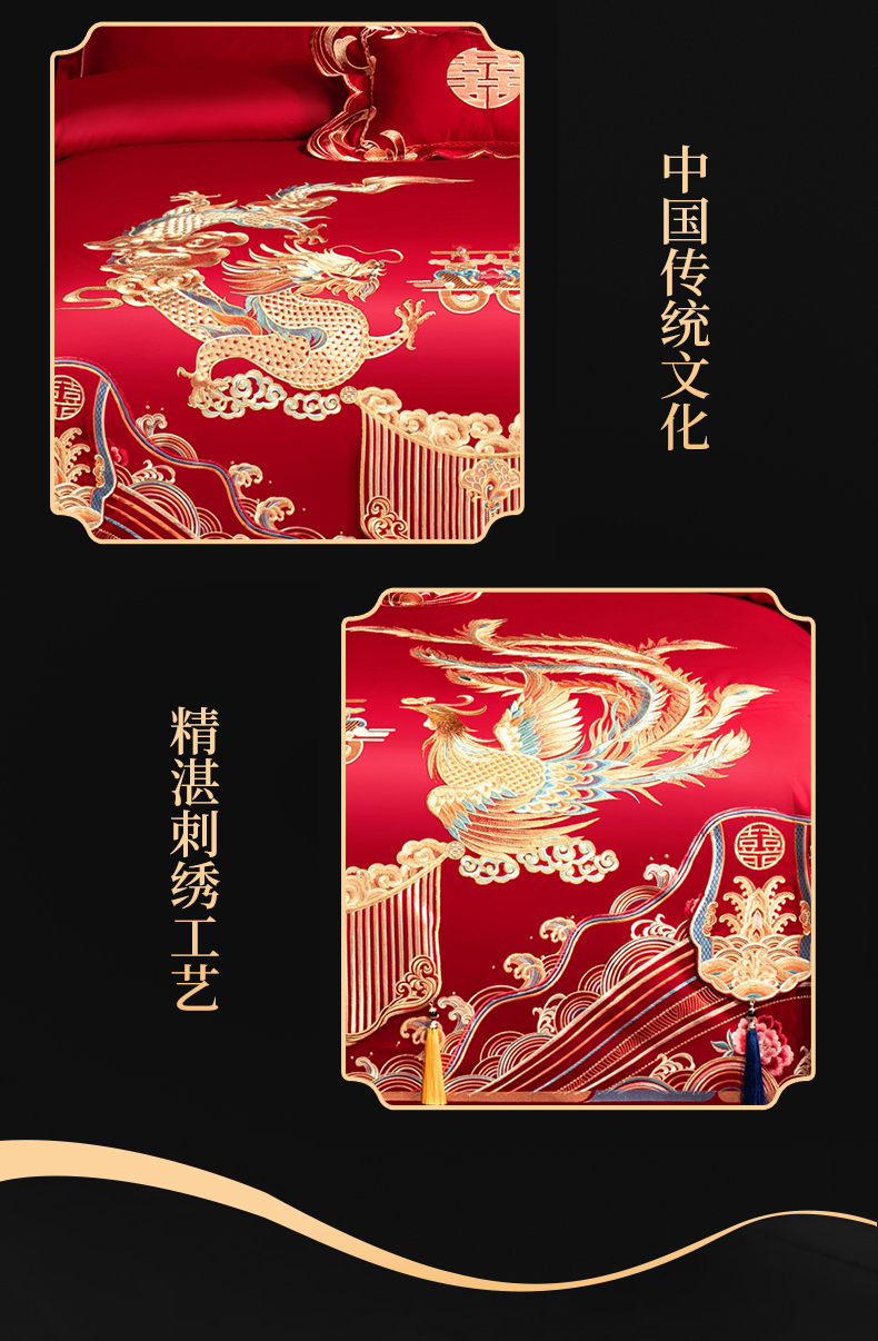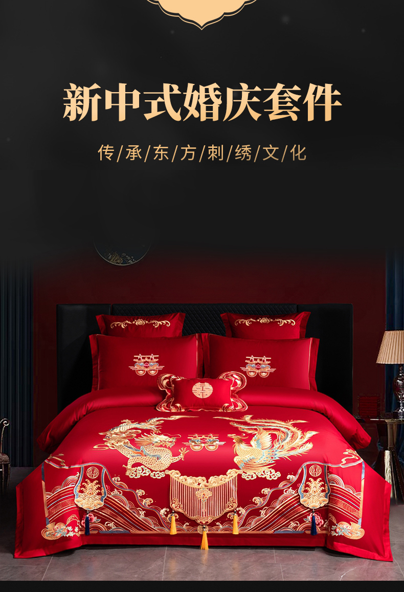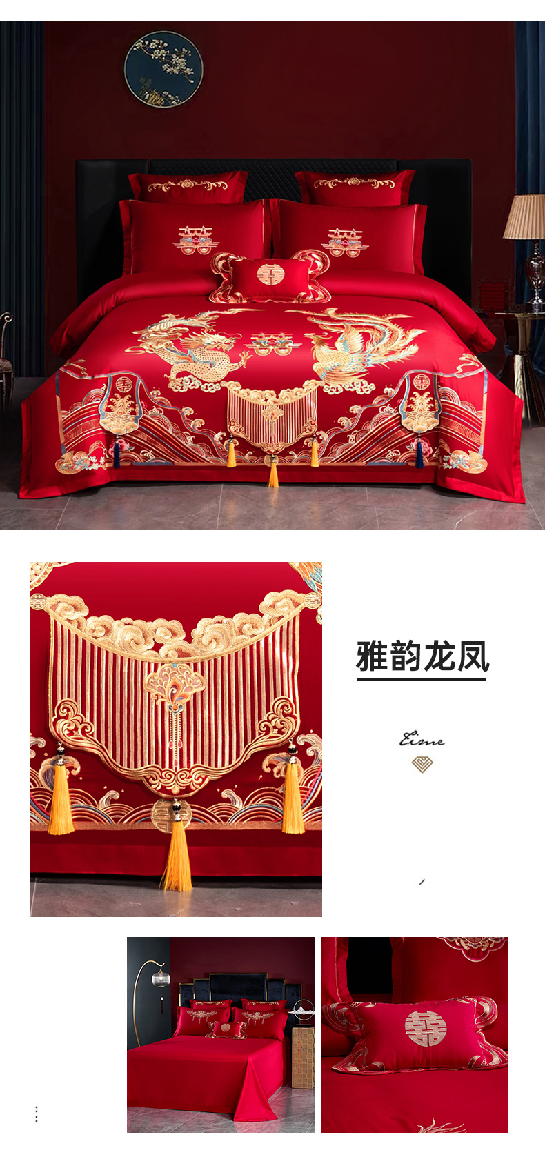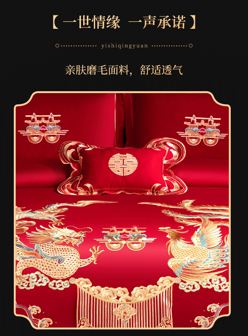 当前位置: 91家纺网 > 商品网购 > 床品套件 > 四件套 > 婚庆四件套 > 慕她家纺 2026年磨毛亲肤棉婚庆四件套大红色刺绣结床上用品 雅韵龙凤