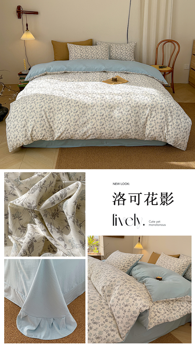 商品名称:铺尚美家纺 2026春夏新品色织棉麻棉纱小露麻系列皱皱纱四件套 花香满园