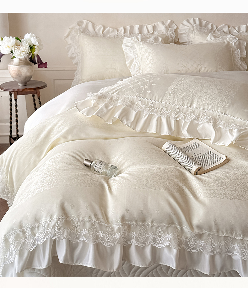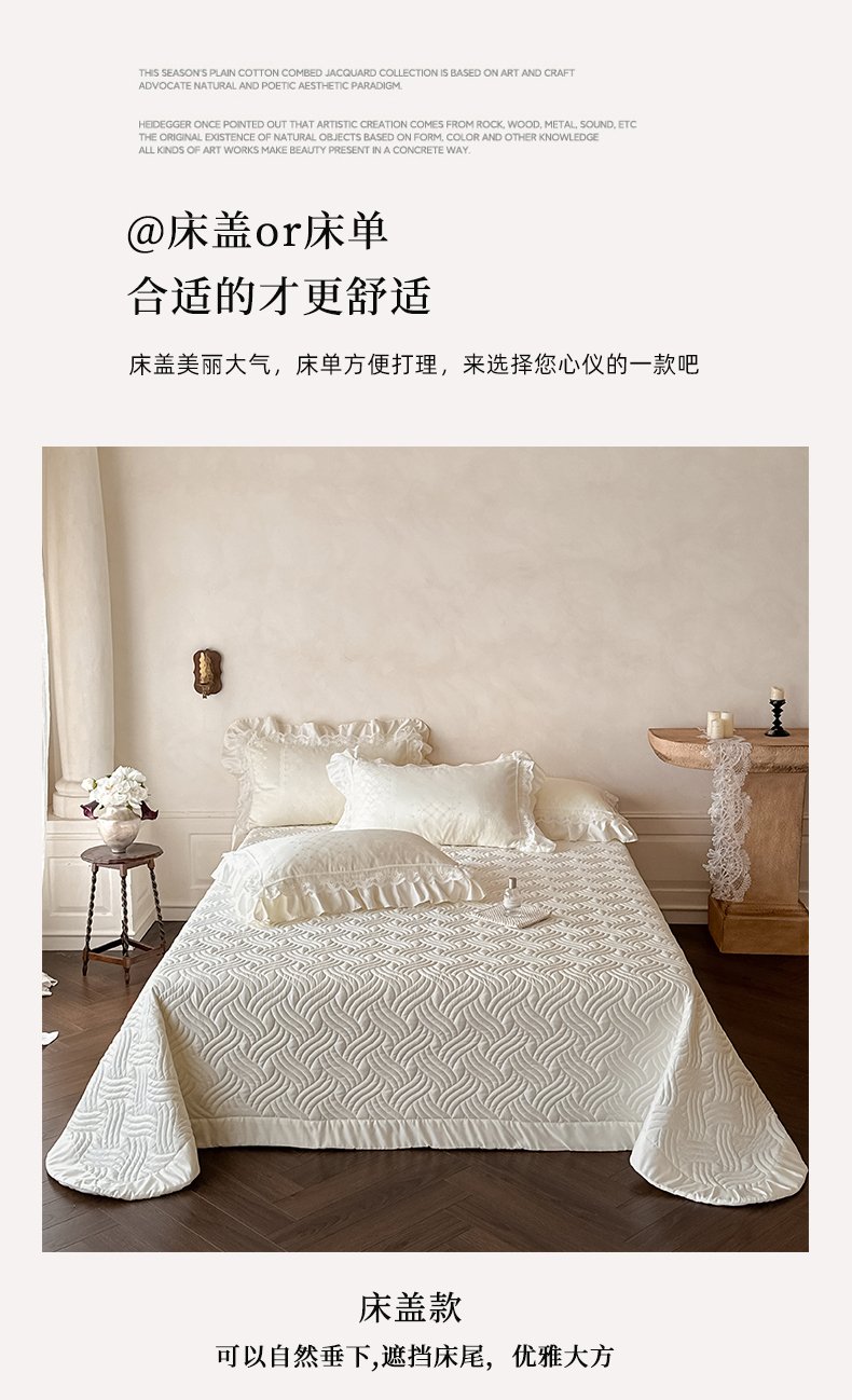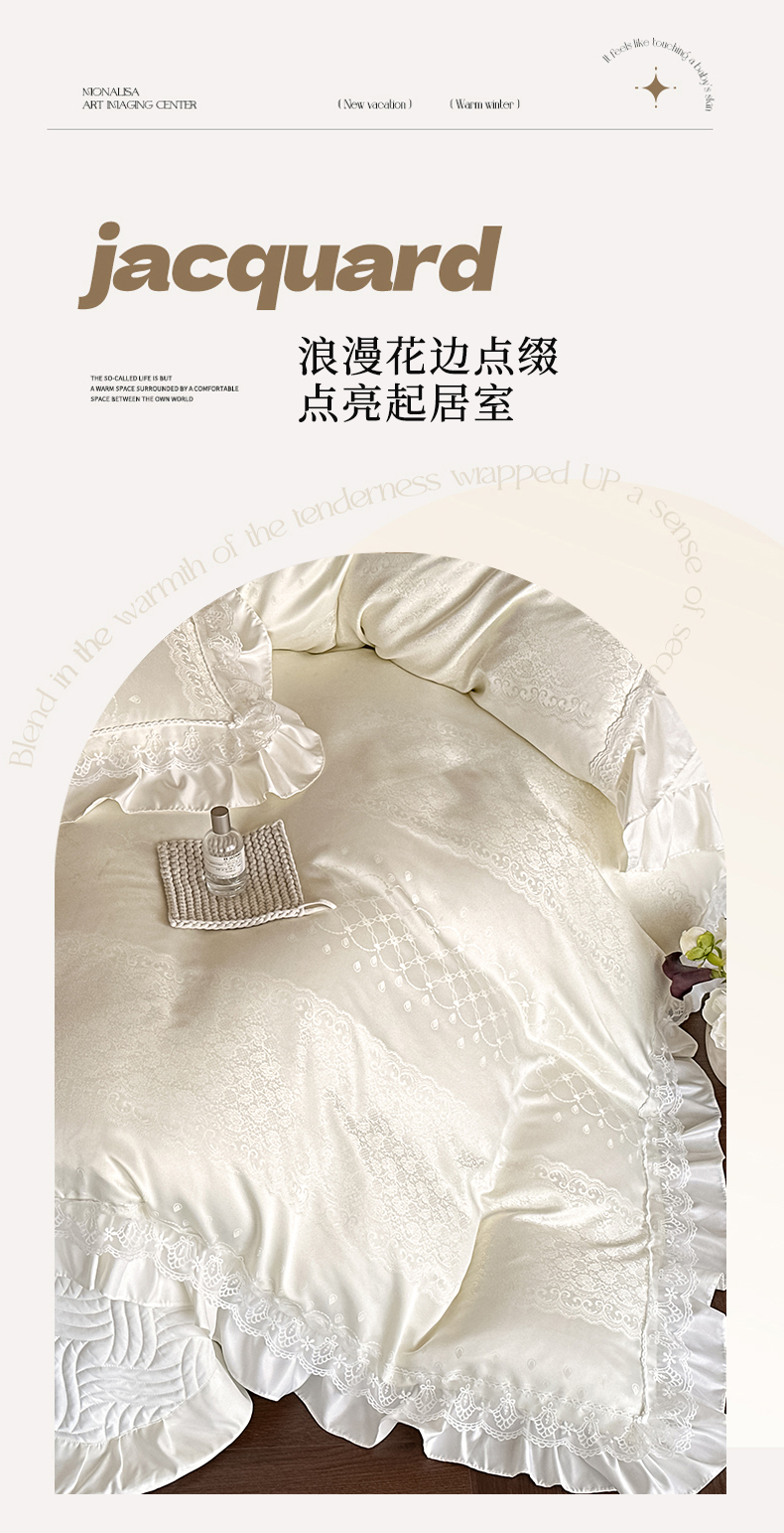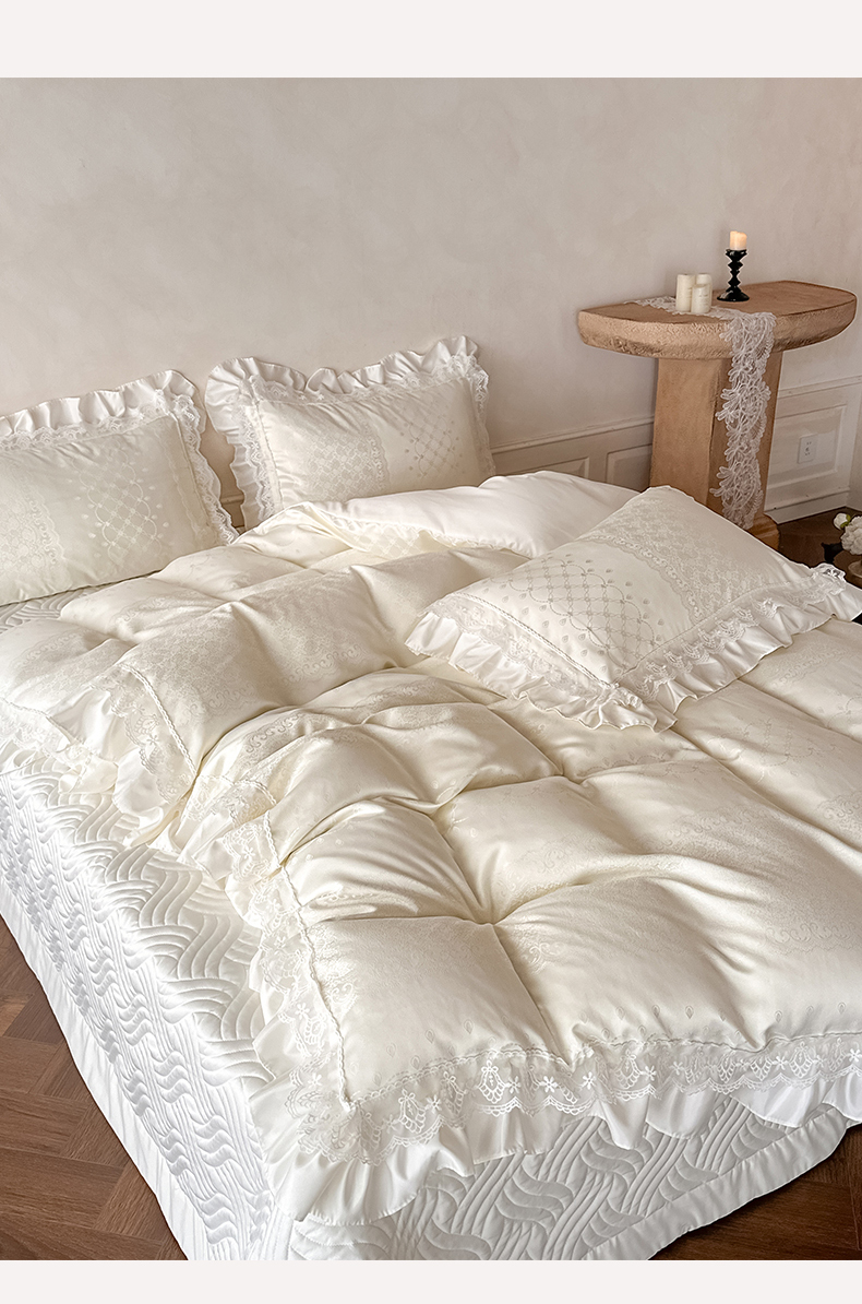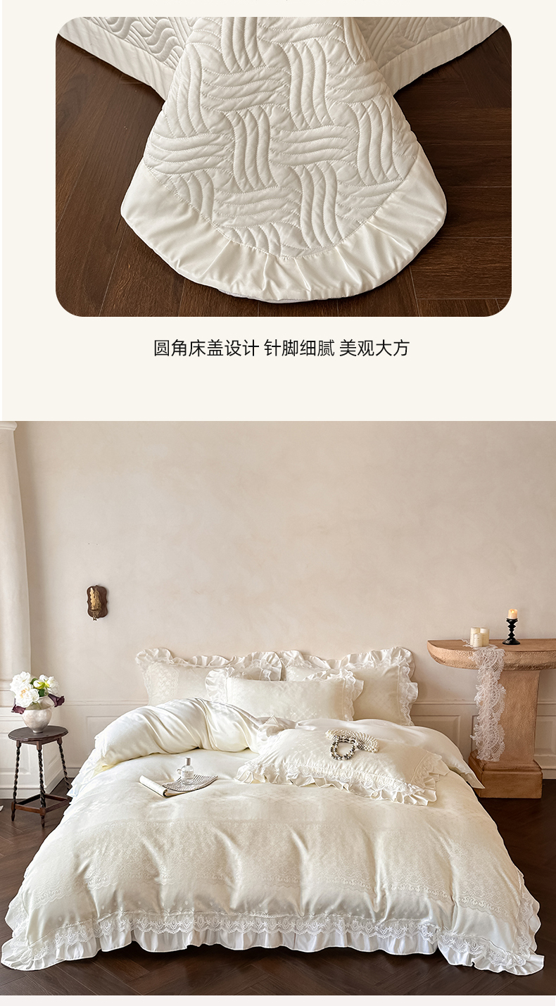 当前位置: 91家纺网 > 商品网购 > 床品套件 > 四件套 > 其它四件套 > 首尔家纺 2026新款花边夹棉床盖四件套厚织提花款系列-提供买家秀 浮生若梦-米白