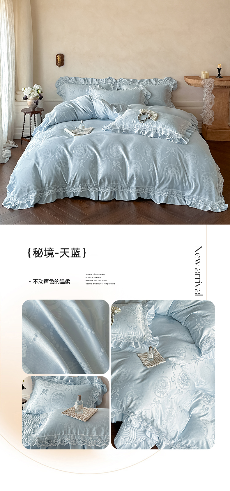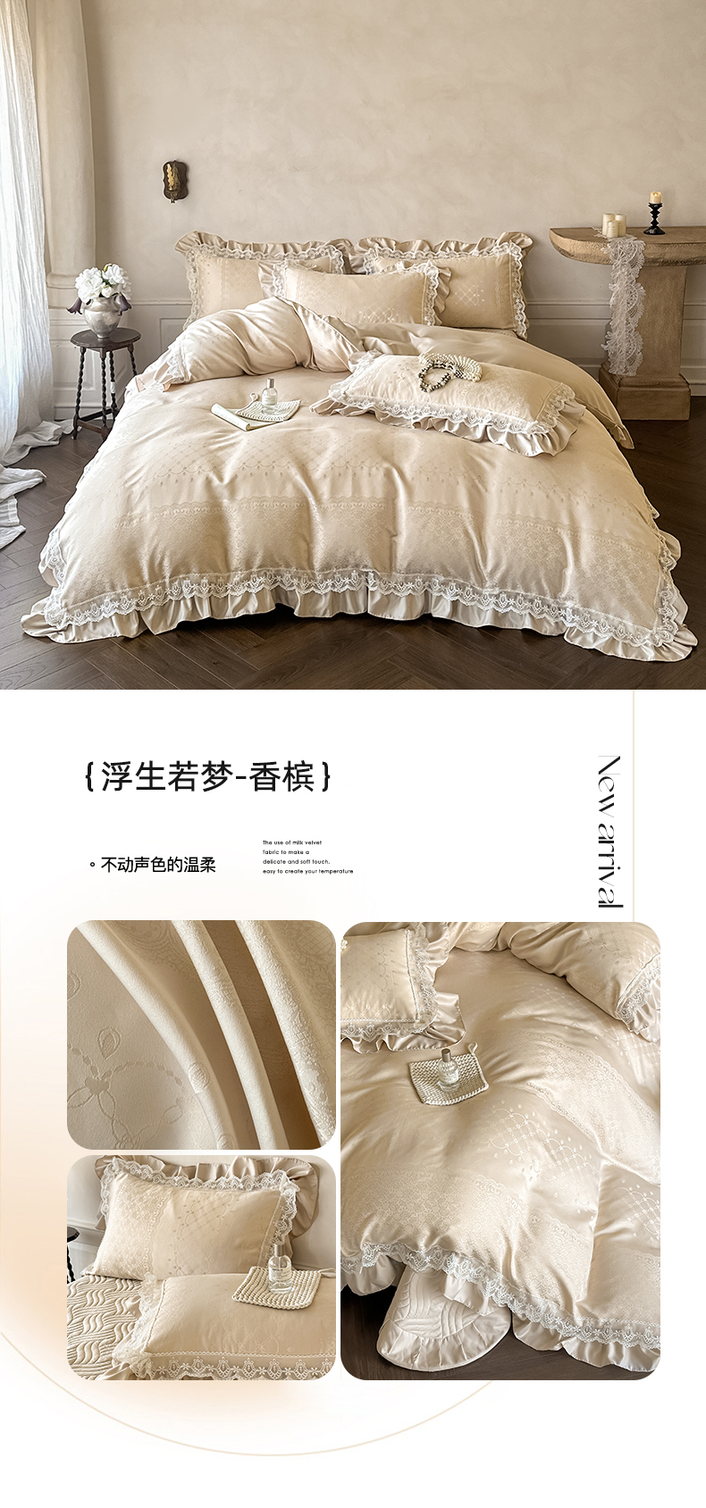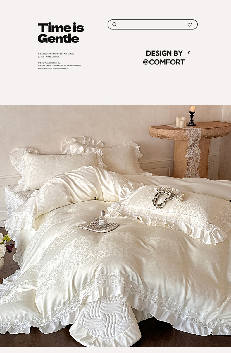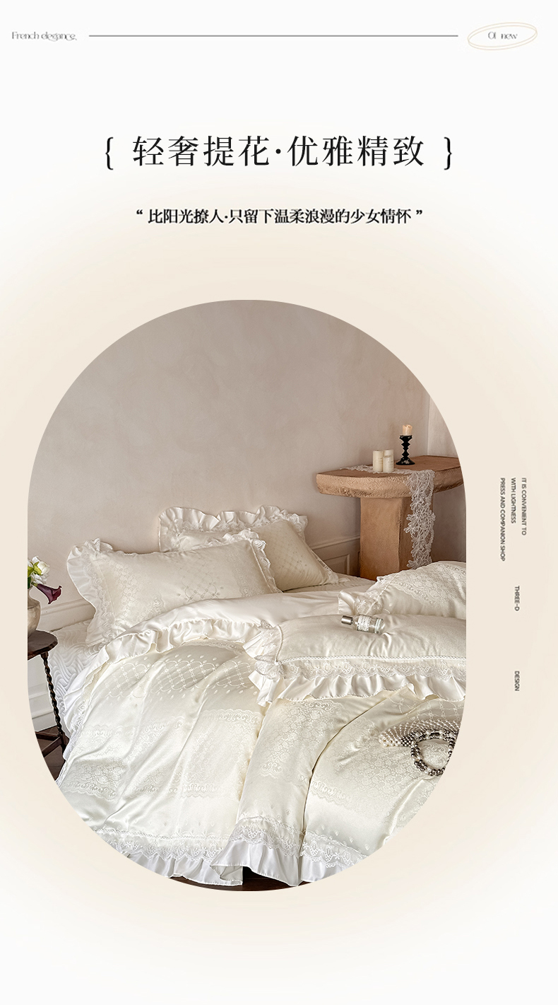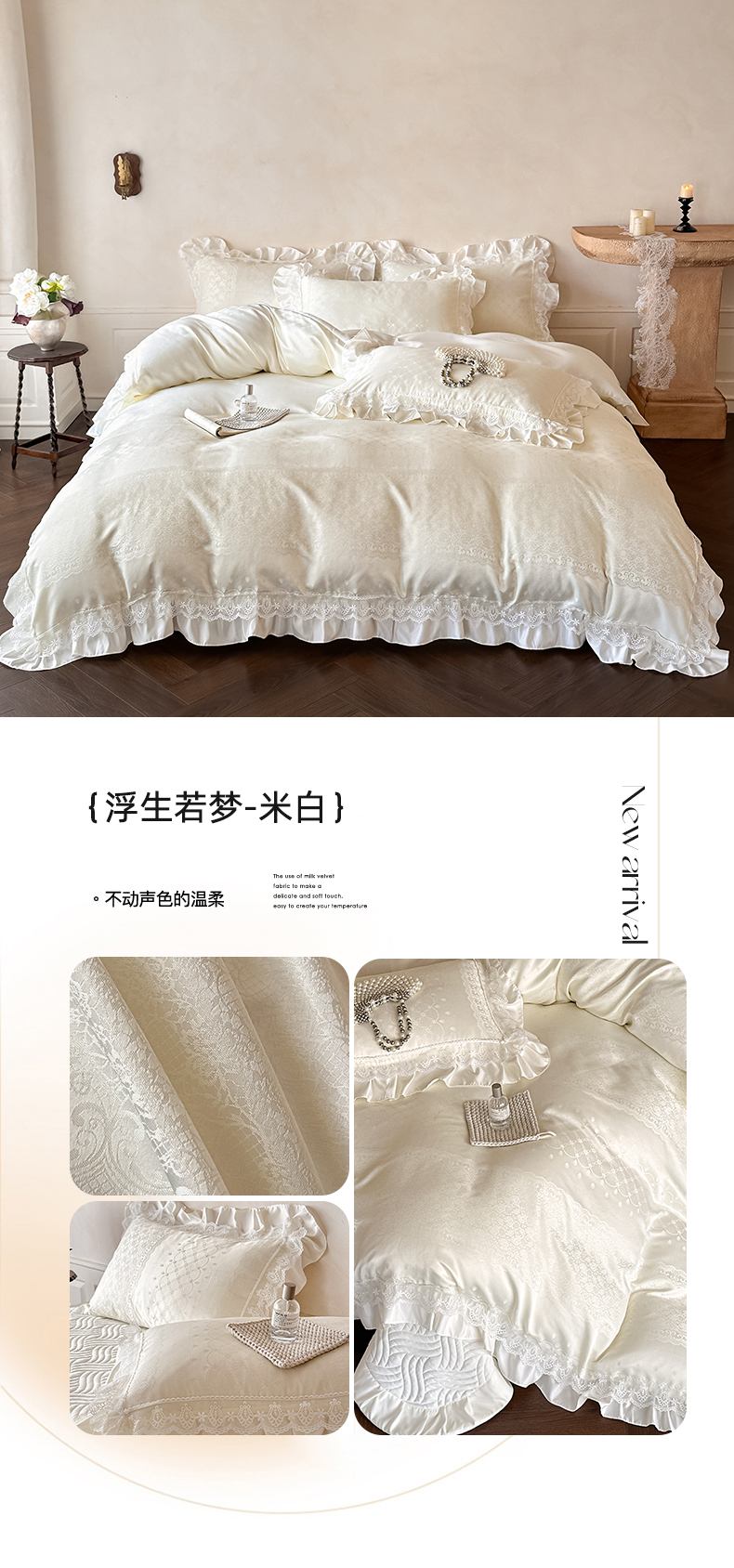 当前位置: 91家纺网 > 商品网购 > 床品套件 > 四件套 > 其它四件套 > 首尔家纺 2026新款花边夹棉床盖四件套厚织提花款系列-提供买家秀 浮生若梦-米白