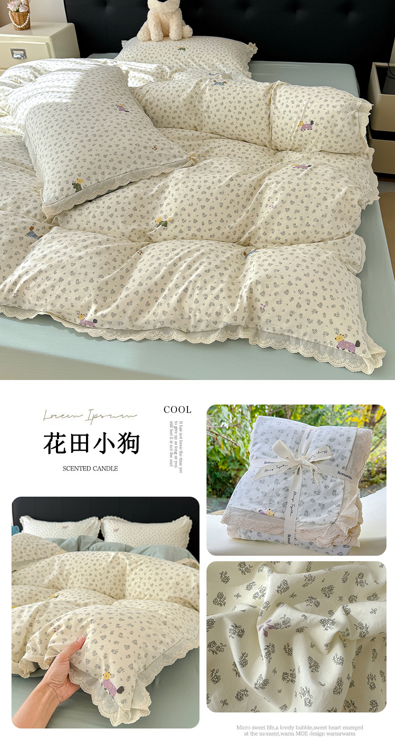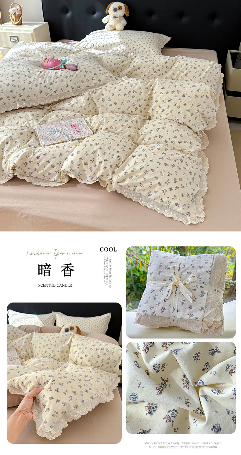 商品名称:铺尚美家纺 2026新款田园韩版花边款小碎花古法水洗仿棉A类云感棉四件套 花漫漫