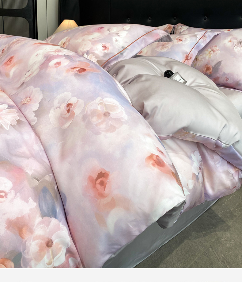商品名称:启航家居 2026新款春夏天丝莱赛尔数码印花四件套 烟花间粉