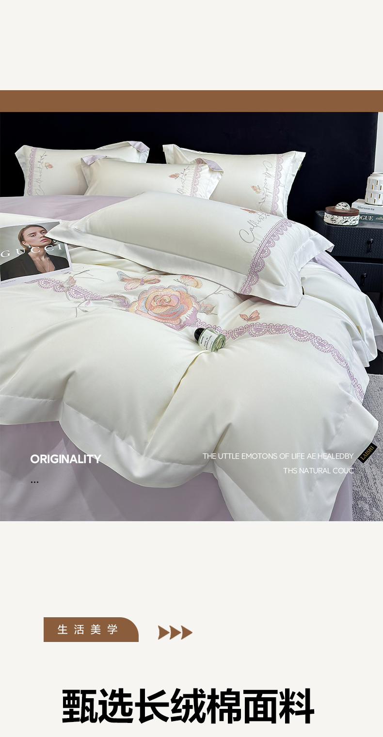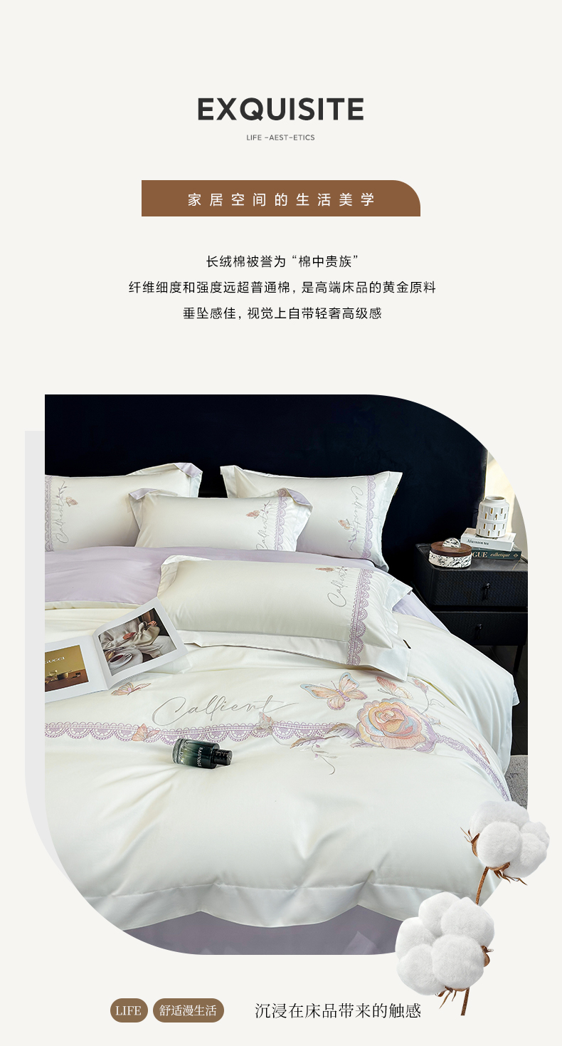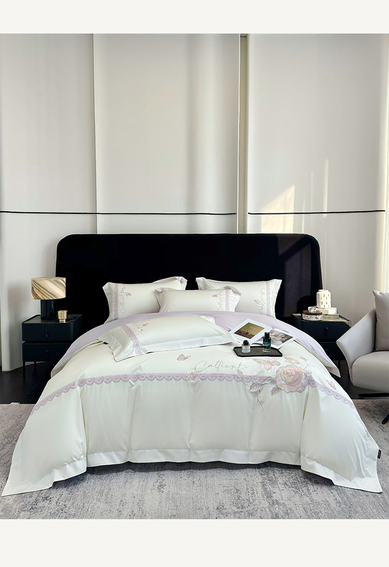 当前位置: 91家纺网 > 商品网购 > 床品套件 > 四件套 > 长绒棉四件套 > (总)欣宜家纺 2026新款100支贡缎长绒棉纯棉无纸刺绣软绣花四件套高端礼盒-蝶曼影